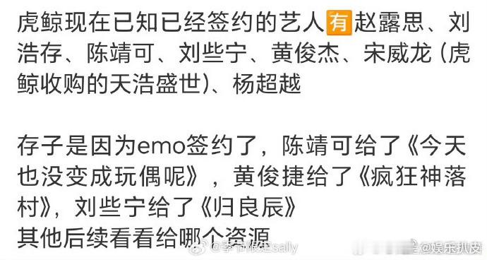 虎鲸签约的艺人虎鲸文娱签约的艺人 网传虎鲸签约的艺人:刘浩存、杨超越、陈靖可、刘