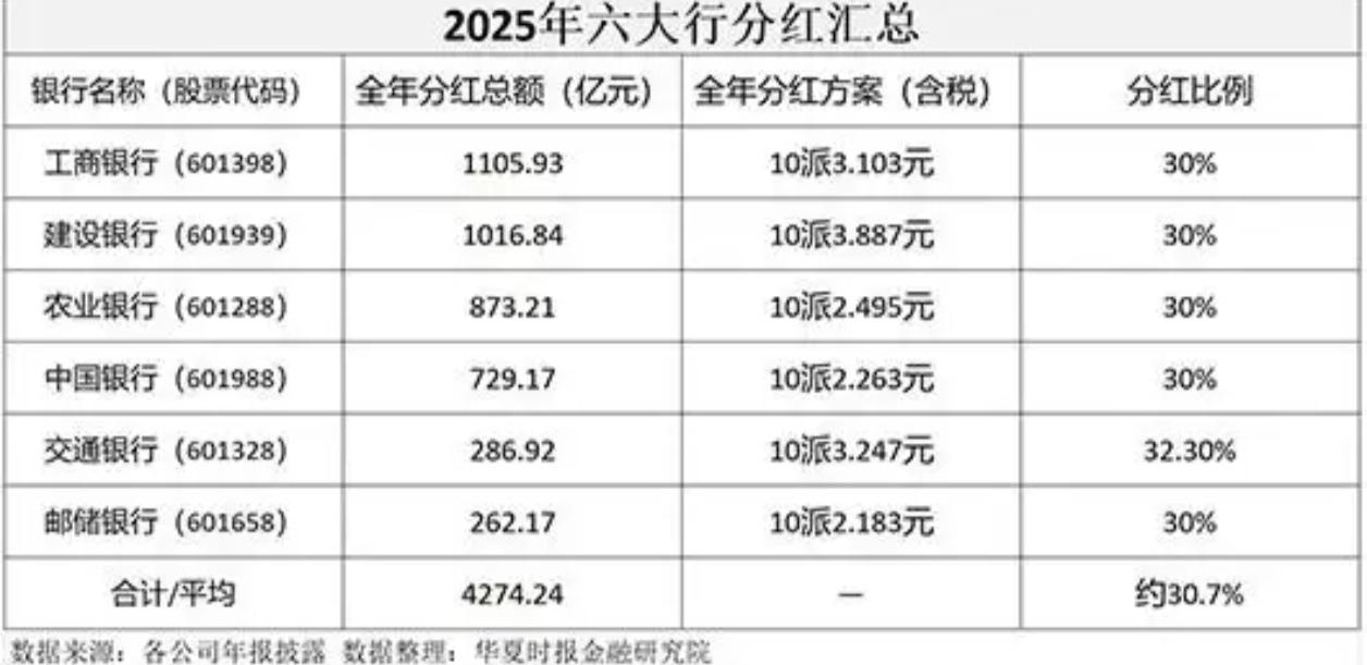 🏦 4274亿“红包雨”来了!六大行分红占A股近1/4,工行千亿领跑