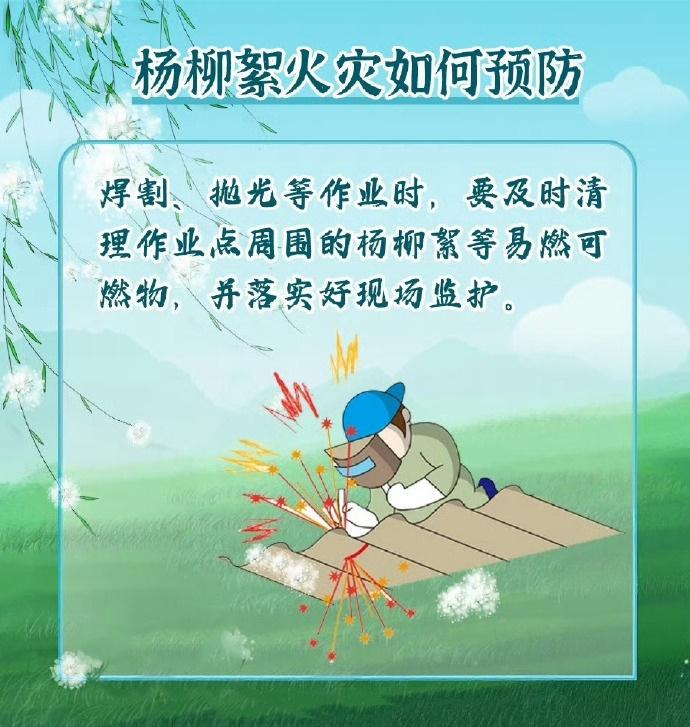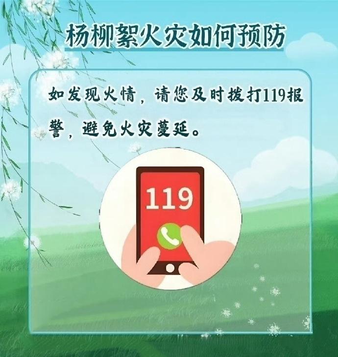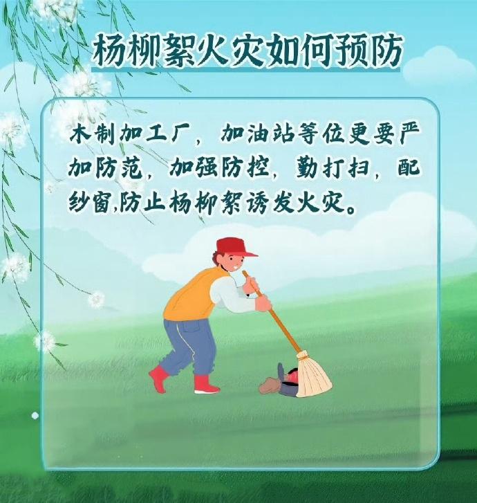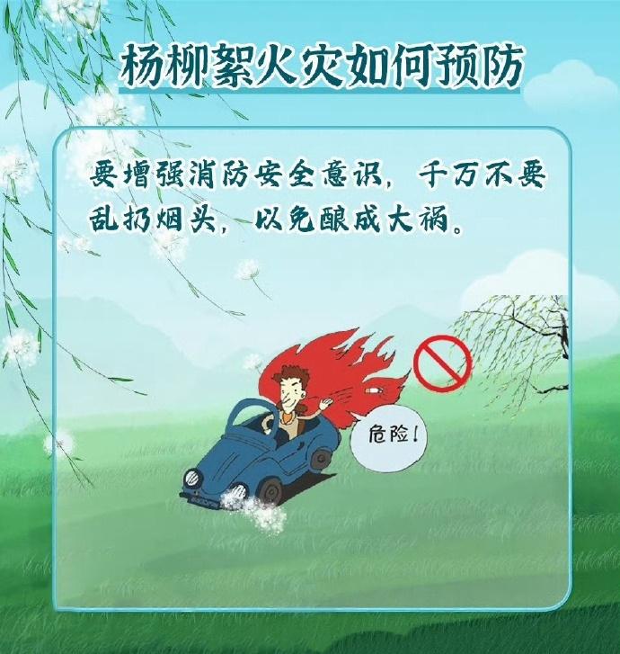 飘飞的柳絮不仅会引发鼻炎让人身体不适,更有可能留下火灾隐患。由于柳絮中含有油脂,遇到明火会引起燃烧,且蔓延速度快。每年四、五月是杨柳絮飘飞的高峰期,需要提高警惕、严加防范。