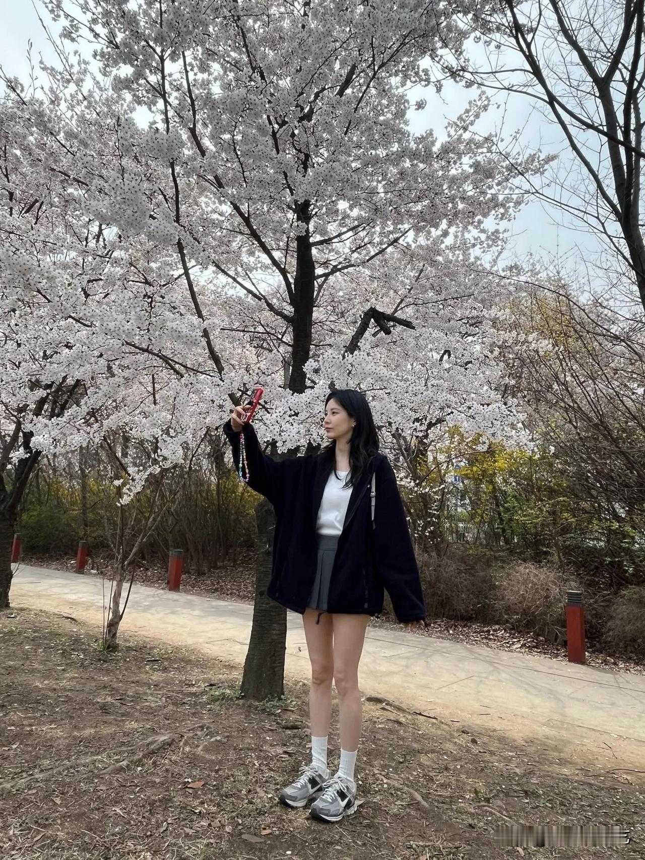 12日,演员徐贤在Instagram上传了多张照片。照片中,徐贤站在如云似霞的樱