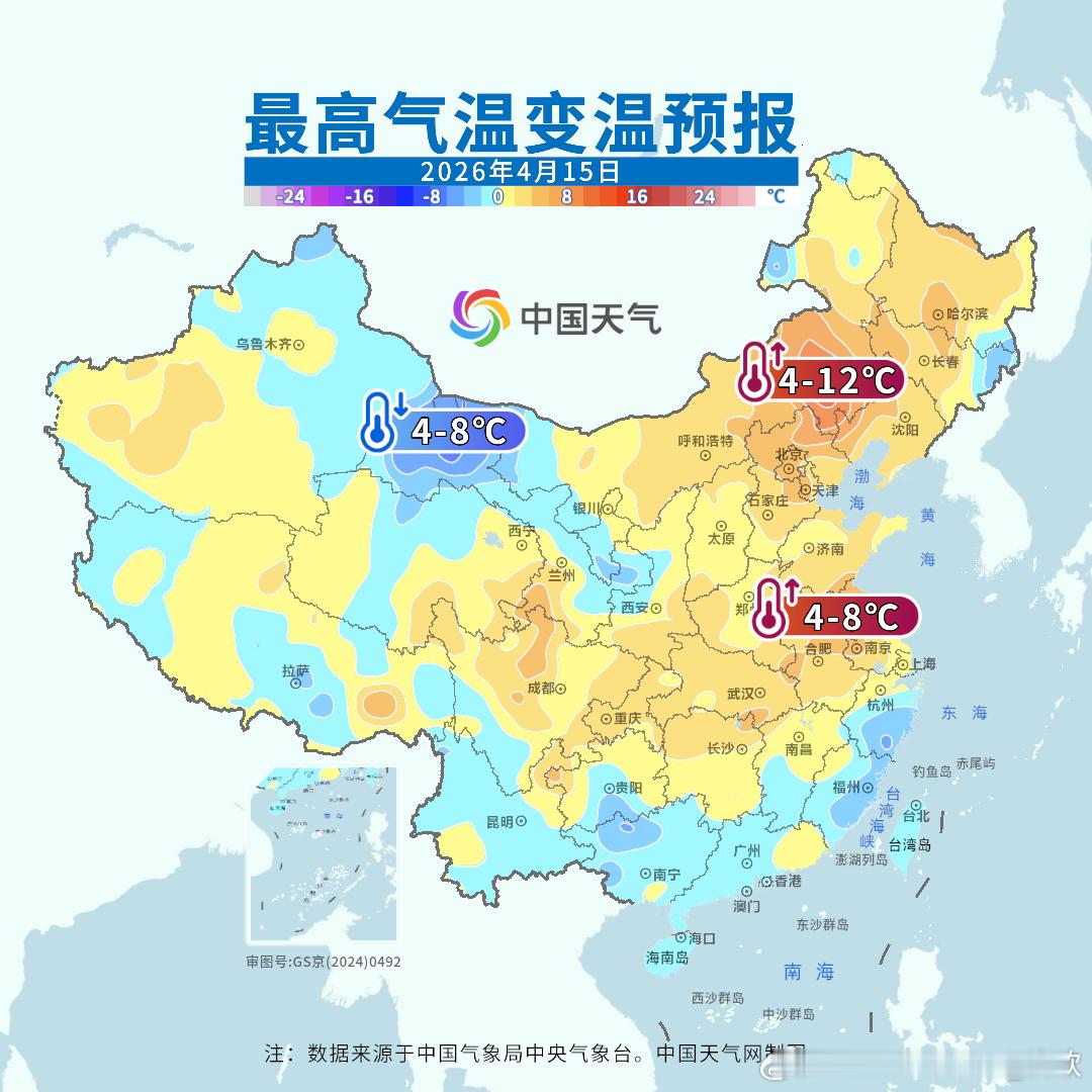 明天有冷空气南下,东北华北黄淮多地降温,南北倒挂不明显,不过气温差异不大,北京、南京、上海、杭州都预报最高20℃。随后北方气温震荡上升,下周后半段,北方多地气温将创出今年新高,兰州报18日、天津报19日最高可能冲上30℃。江南在17日以后阴雨缩减,气温也会明显上升。