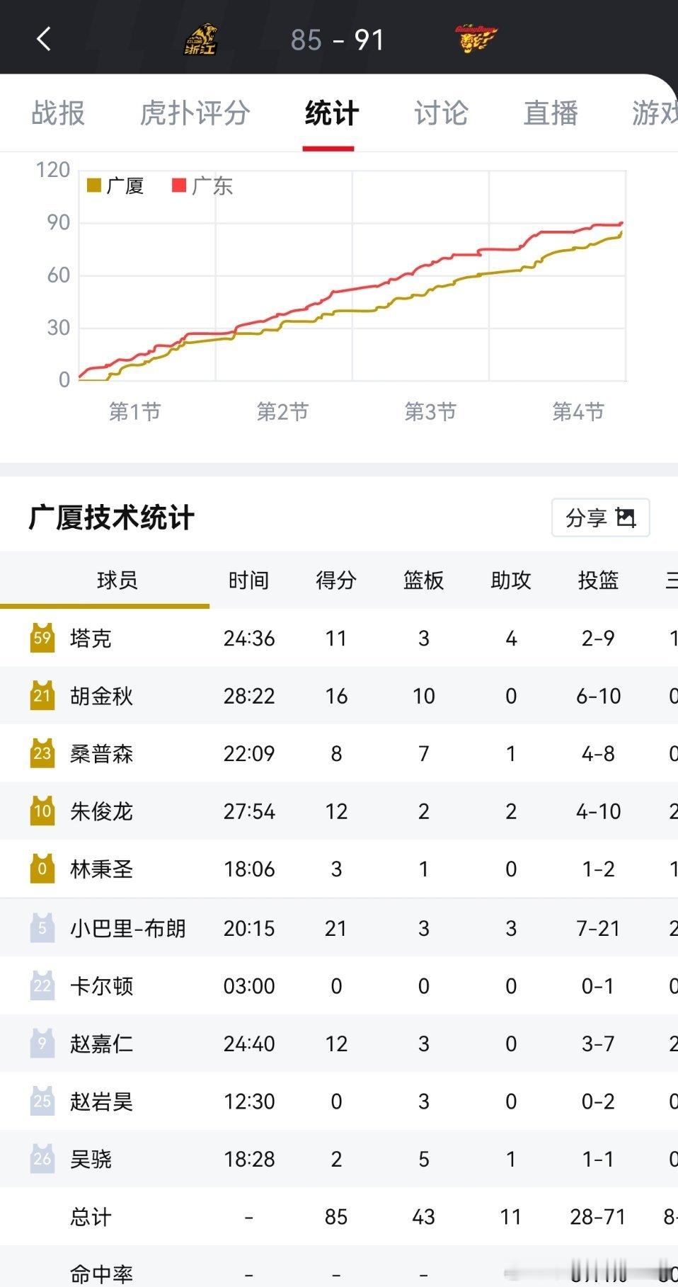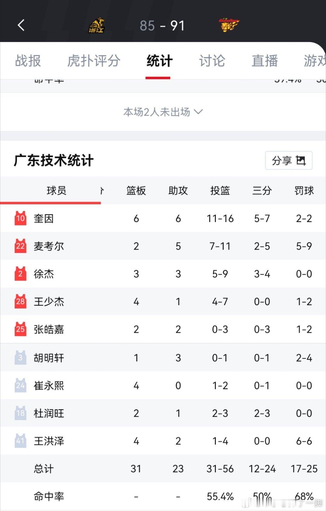 广东比广厦少12个篮板还能赢,是因为今晚三分命中率50%,罚球命中率很差