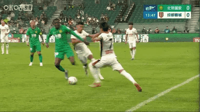 比赛进行到第15分钟,韦世豪在持球过程中被抢断倒地,主裁判并未吹罚北京国安队防守球员犯规,但令人没有想到是!在倒地起身后,韦世豪报复性亮鞋钉犯规吃到黄牌[融化]