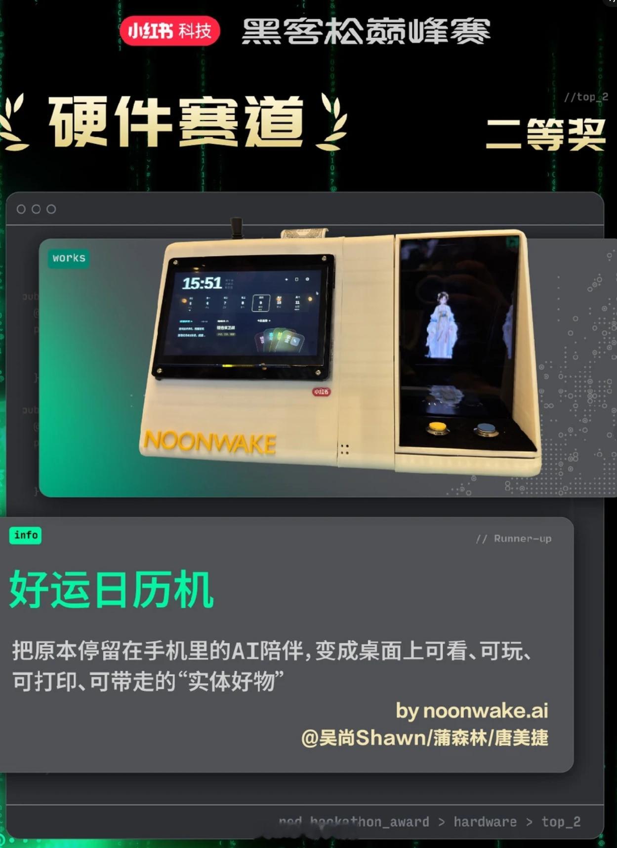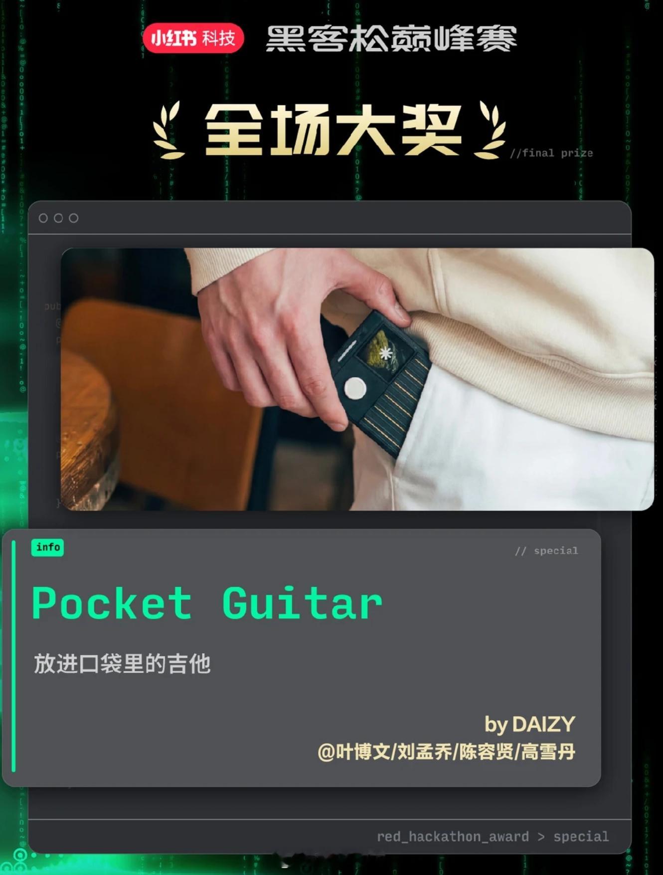 🏆 **Pocket Guitar**,口袋卡片吉他,颜值和功能双杀,DAIZY团队真的太牛了! 🧠 **脑控轮椅**,无障碍智能驾驶,让失能人群也能自由出行,香菇肥牛团队太有爱心了! 🎉 **好运日历机**,手机里的AI变身实体好物,太有仪式感了! 🤖 **TRI.ME吹了么**,浴室黑科技,把时间还给自己,太实用了! ✨ **Chic Chic**,发型 TikTok,越刷越懂你,你的发型从此不用愁! 🧠 **Attune**,人机协同,AI找人,未来感十足,太有科技感了! 🎯 **MonoSlides**,本地Linux系统,让PPT生成器更美,太有创意了!