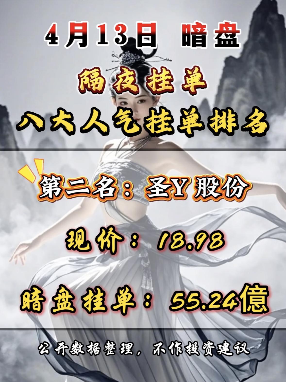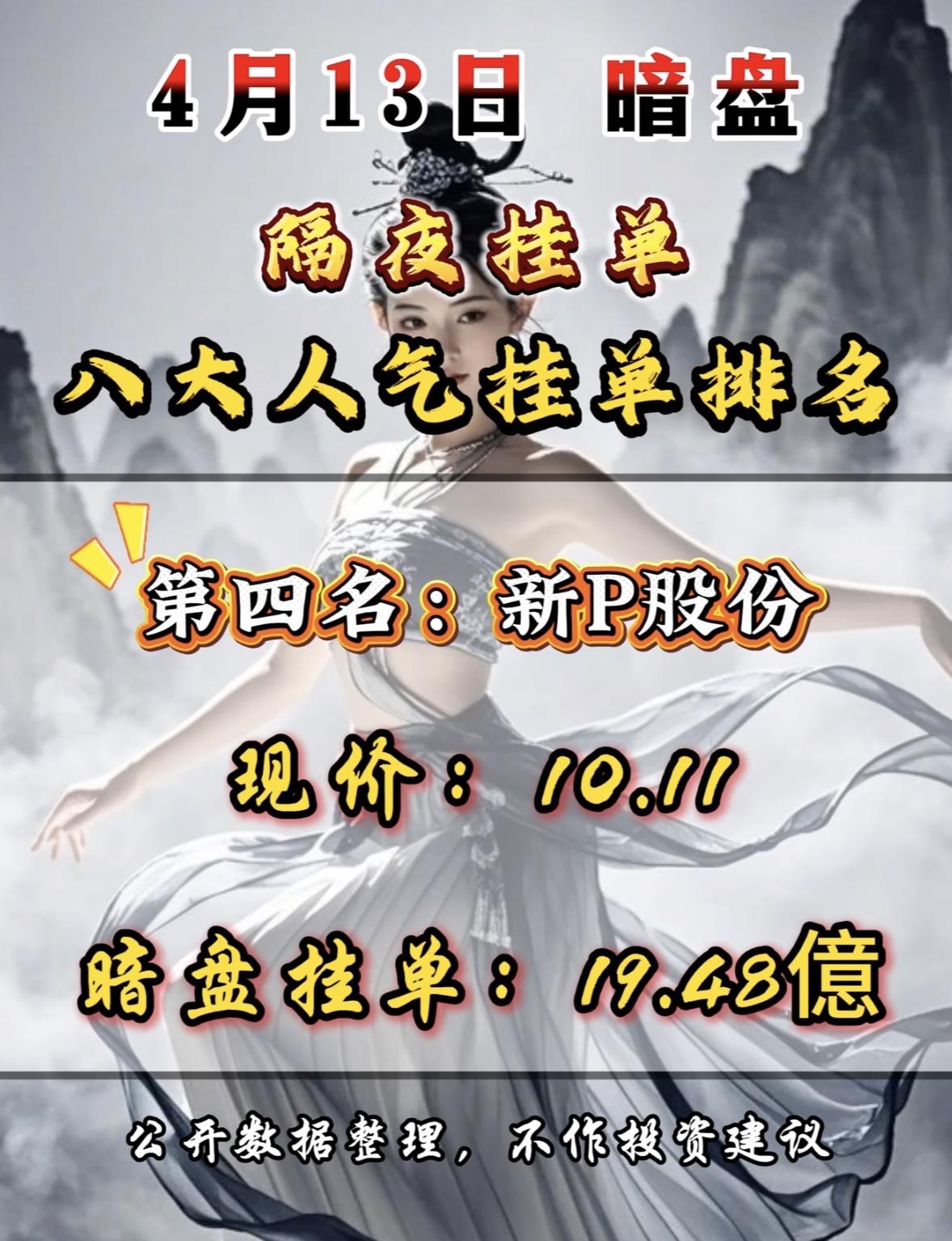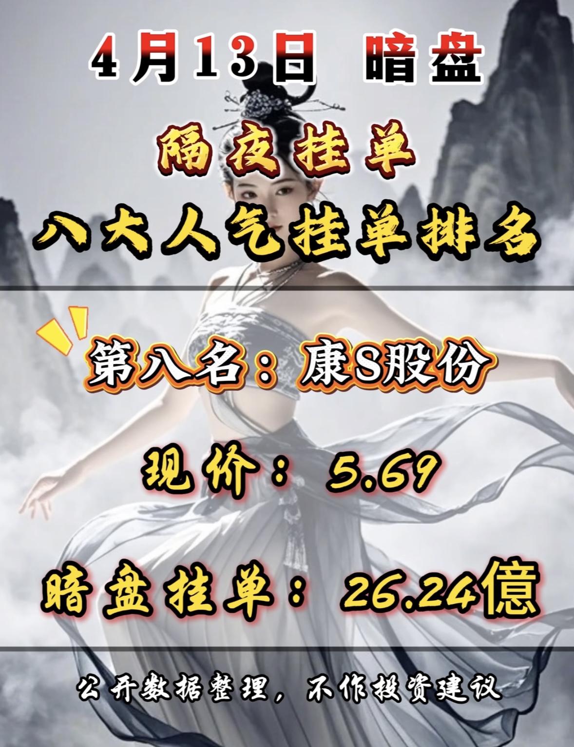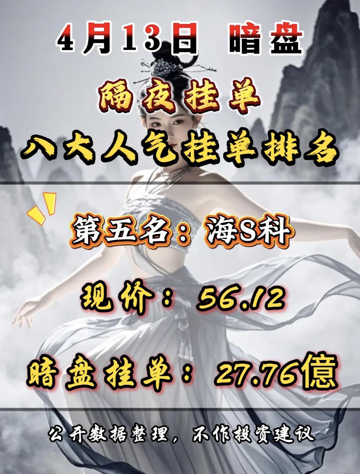 4月13日周一暗盘隔夜挂单排行榜出炉