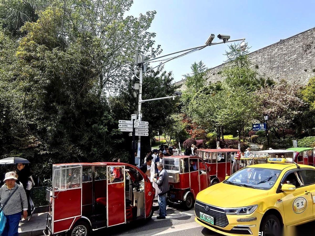 就在鸡鸣寺解放门底下,一溜儿排开八九辆三轮车,司机们也不吆喝,就靠在车上抽烟,眼神跟探照灯一样,在游客脸上来回扫。
