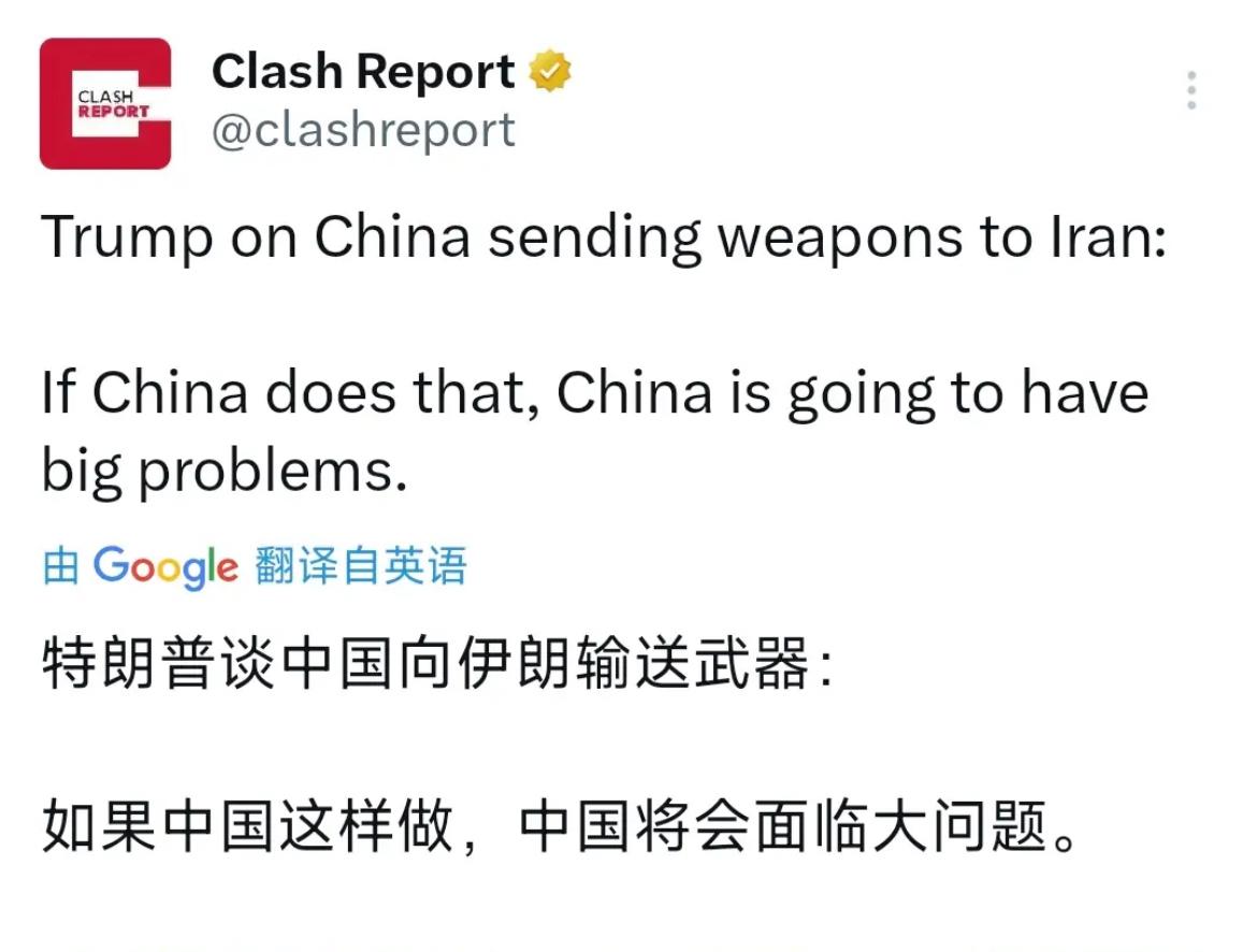 特朗普昨天(北京时间4月12日)接受采访时表示,如果中国向伊朗输送武器,中国将会面临大问题。