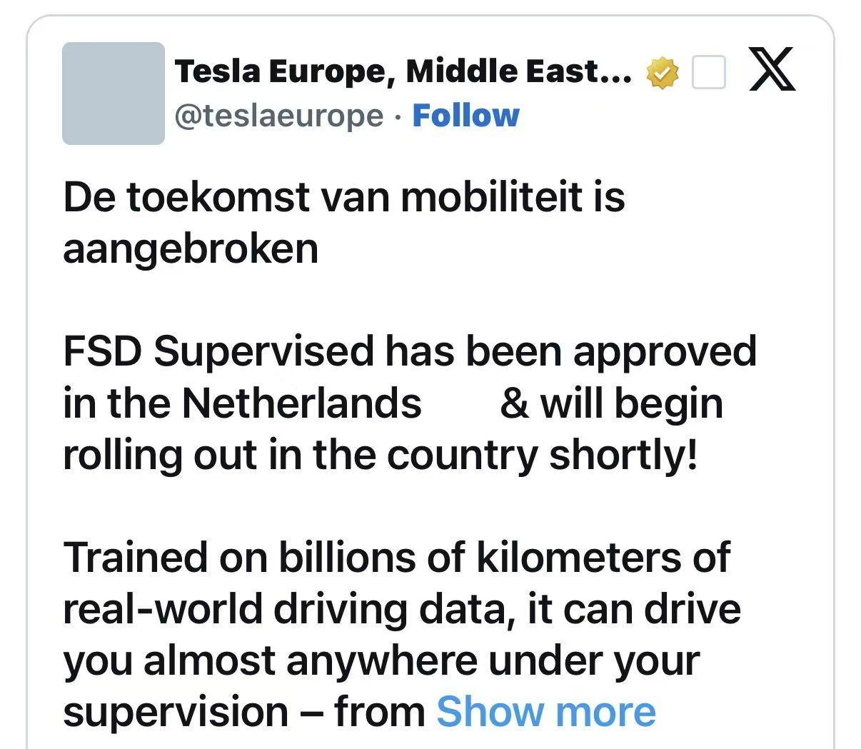 特斯拉FSD终于被批准在欧洲使用,但目前只限在荷兰。