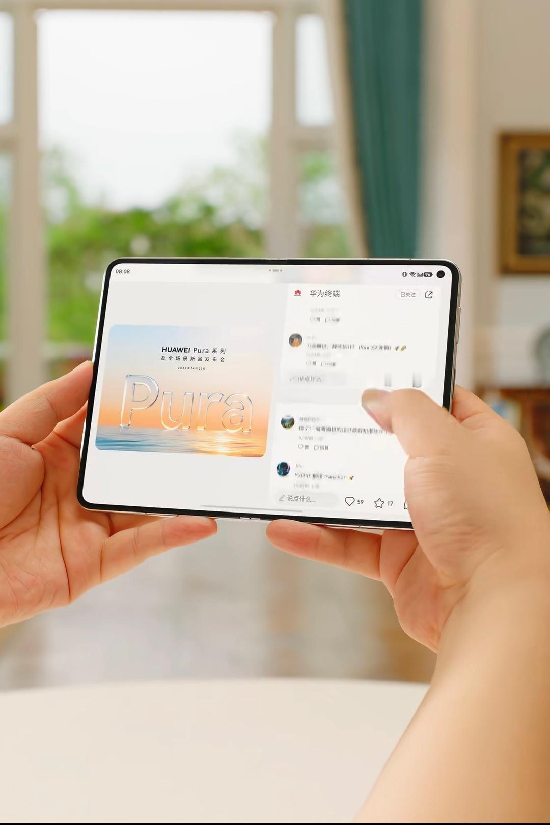定位是大阔折,展开之后跟个小平板一样小外屏也变成全屏了…俺也好想上手感受一下华为PuraXMax