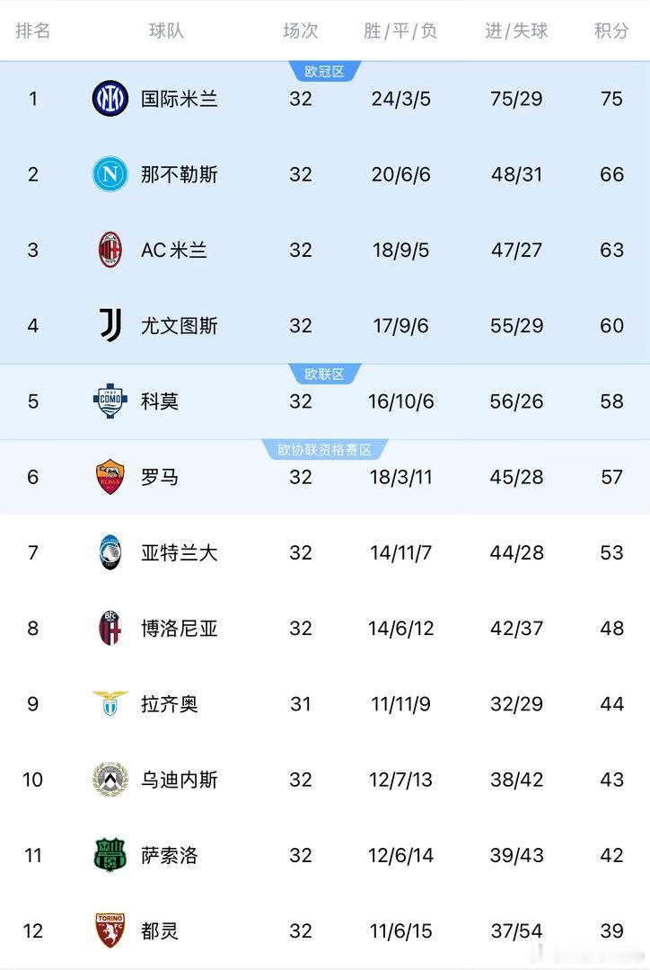 一觉醒来,国米让二追四客场战胜了科莫,领先优势扩大到9分,冠军基本上没啥悬念了。