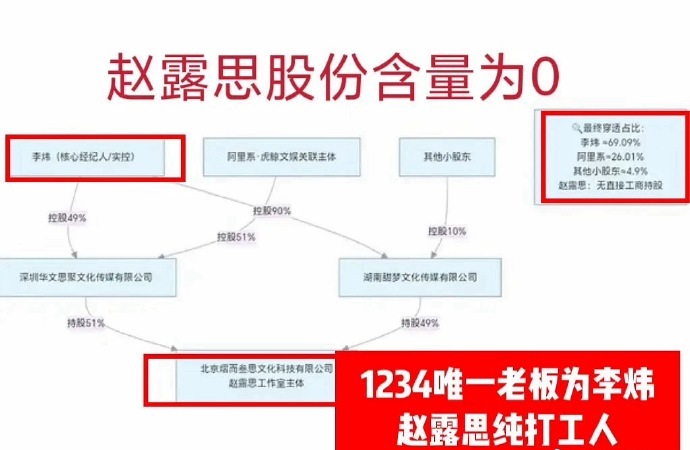 赵露思没有1234的股份,也是打工人,找老板别找错人了。
