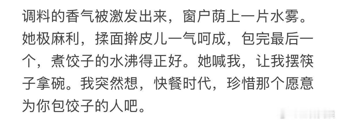 快餐时代,珍惜那个愿意为你包饺子的人吧 !!!