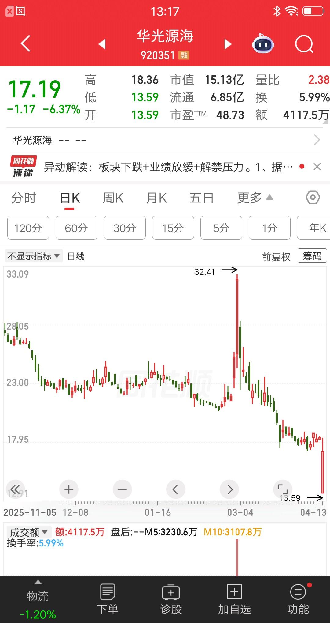 一位北京的股民,今天运气爆棚呀,天上掉馅饼的好事被他捡到了。他在集合竞价的时候,想看看谁跌的最惨,结果发现华光源海大跌26%。他翻了一下消息面,并没有看到有利空,一股想抄底的冲动瞬间上头。他觉得还有一种可能,主力故意砸盘试探,有可能会撤单的。
