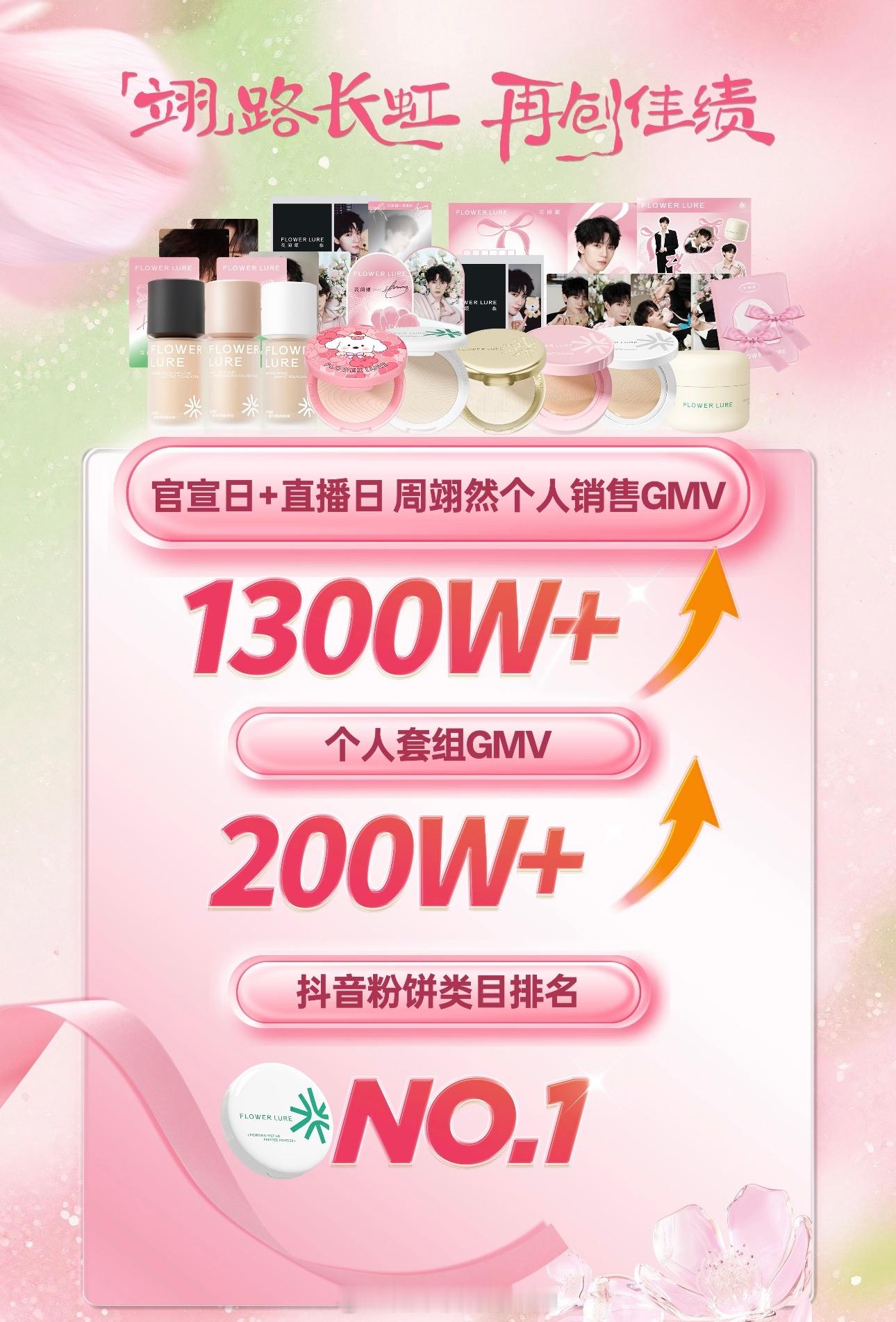 周翊然花间颂官方战报官宣日+直播日,个人销售额破1300W+ 个人套组GMV破2