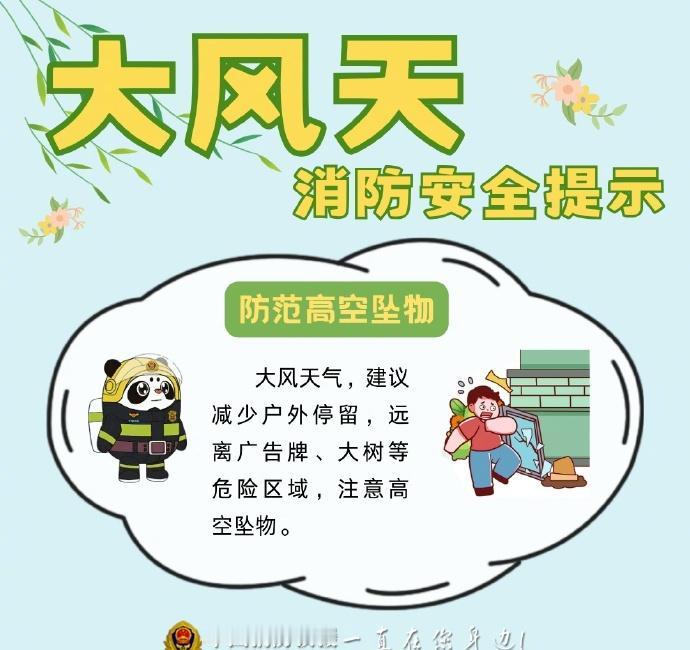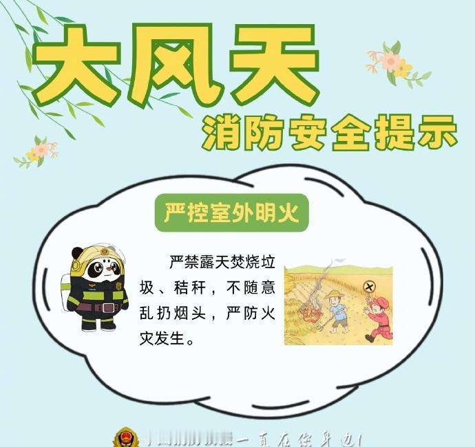 【气象与科普】春风一吹隐患加倍,这份大风天气消防安全提示请收好春季多大风天气,风助火势极易快速蔓延,也会大幅增加扑救难度。野外严禁违规用火,居家及时排查隐患,从源头杜绝风险,别让大风给火情“煽风点火”。