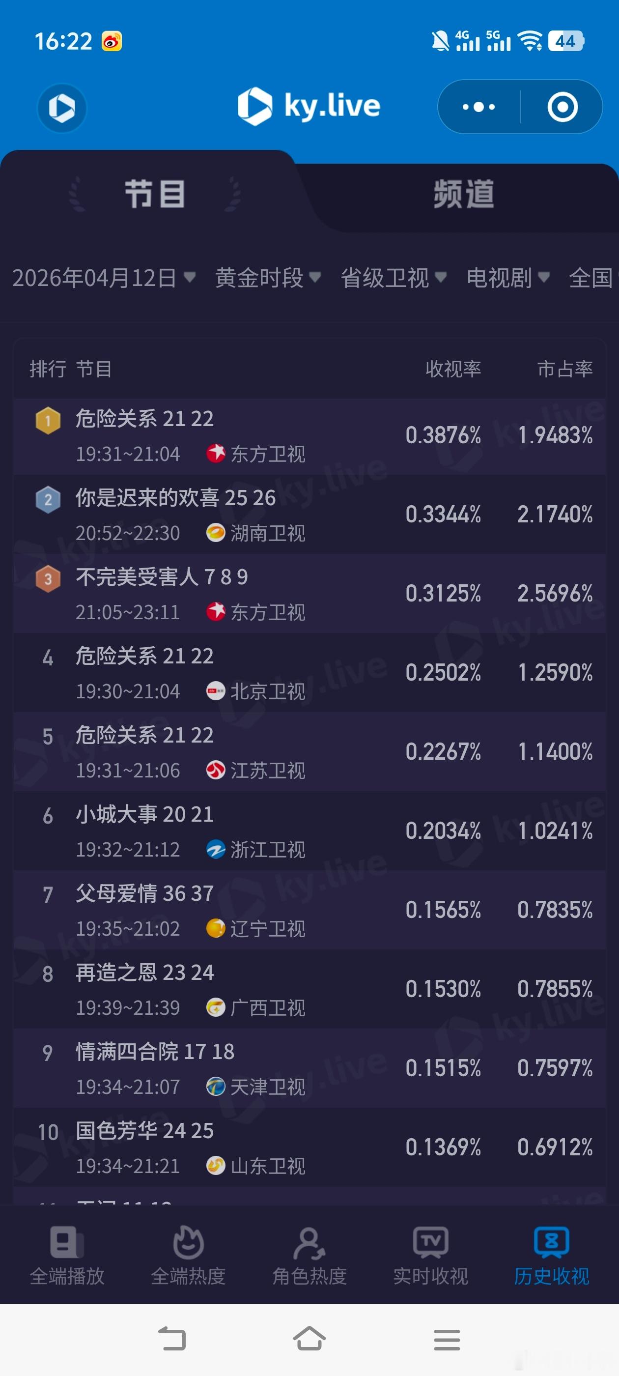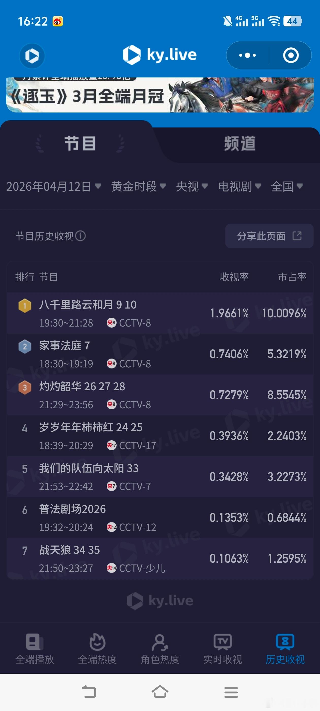 电视剧八千里路云和月4月12日cvb收视日报!八千里路云和月1.812,酷云1.