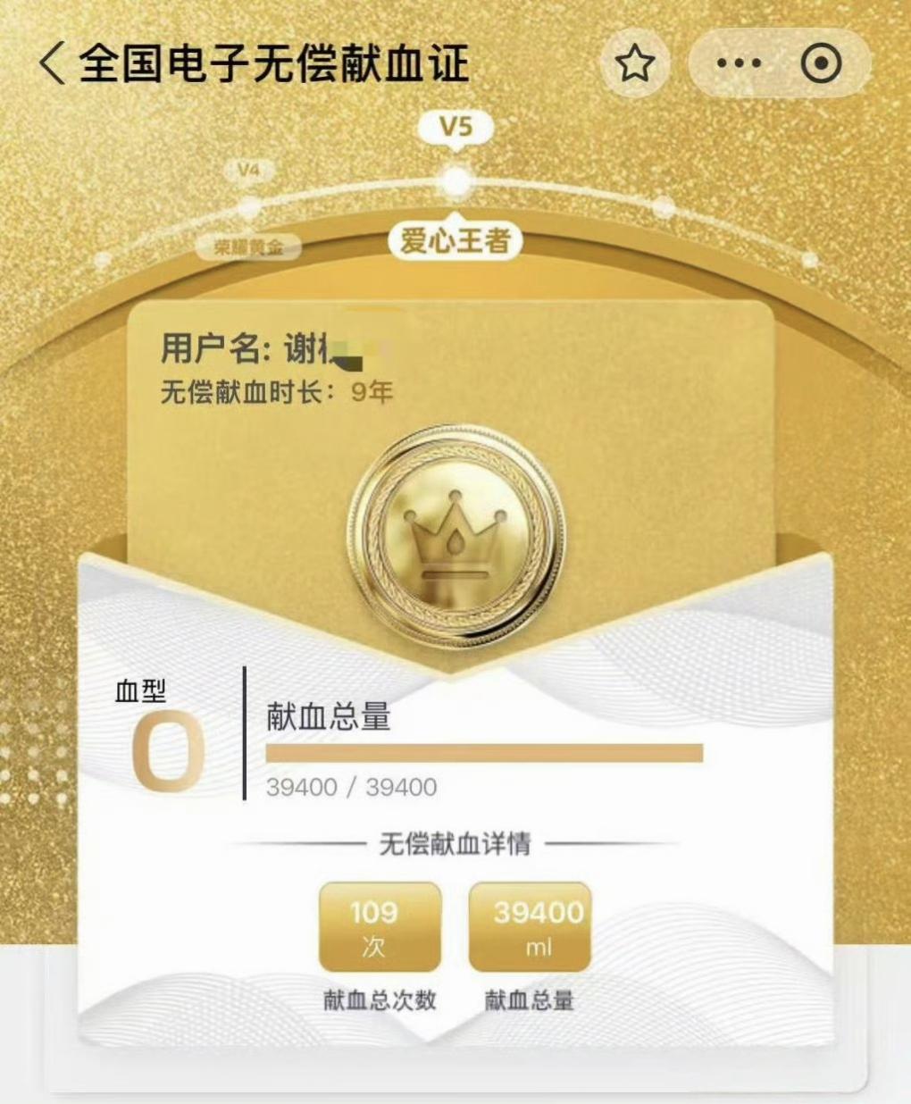 今天看到这个新闻真的让人心里堵得慌!来自四川30岁的谢先生,前消防员出身,十年间无偿献血109次,总量累积快4万毫升,相当于8个成年人的全身血量,还拿过两次全国无偿献血奉献奖金奖,这样的“热血英雄”,却在医院碰了壁。