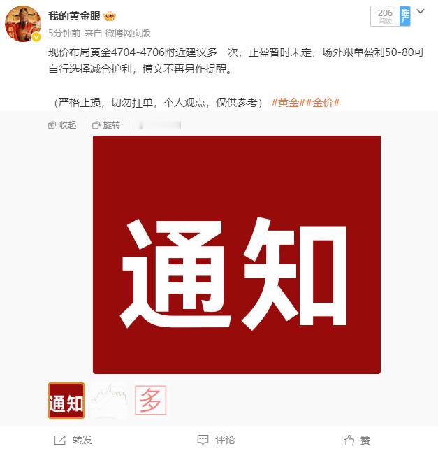 捷报:本周四连胜!晚间现价布局4704-4706多单目前行情来到4611,跟单可