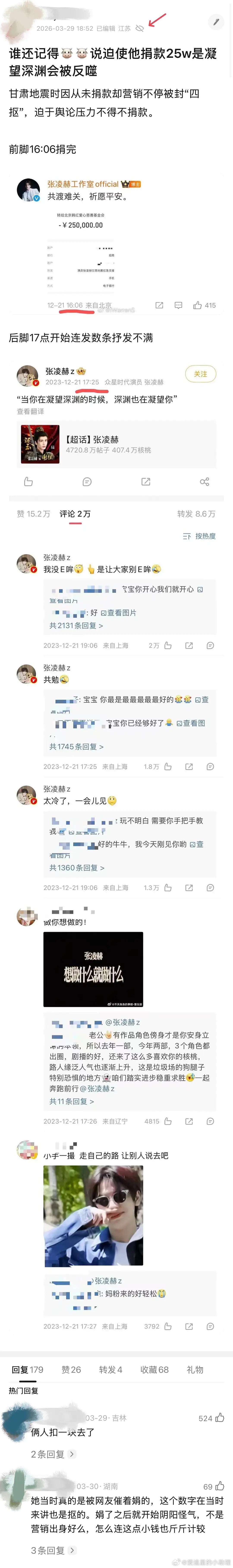 郫县开始讨论张凌赫曾在甘肃地震时,说逼他捐了25w是凝望深渊了张凌赫逐玉庆功宴发