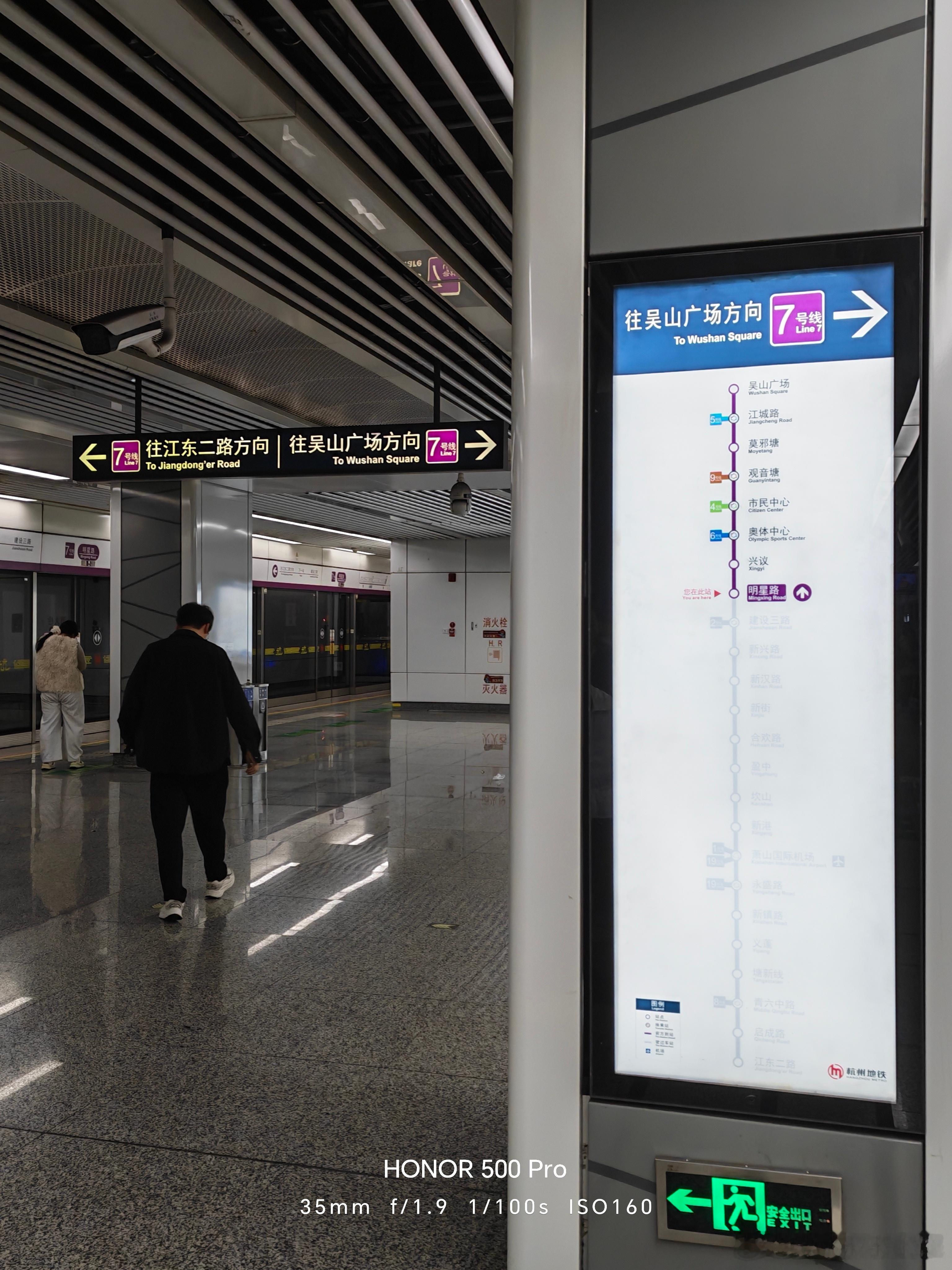杭州地铁7号线的标识真的非常清晰而人性化,在电梯口就能知道左右列车的行驶方向,而且是三重指示,从楼梯口、站台天花板,到立柱,一目了然,用户无死角知道自己要乘坐哪趟车。人性化的杭州地铁 杭州·明星路(地铁站)