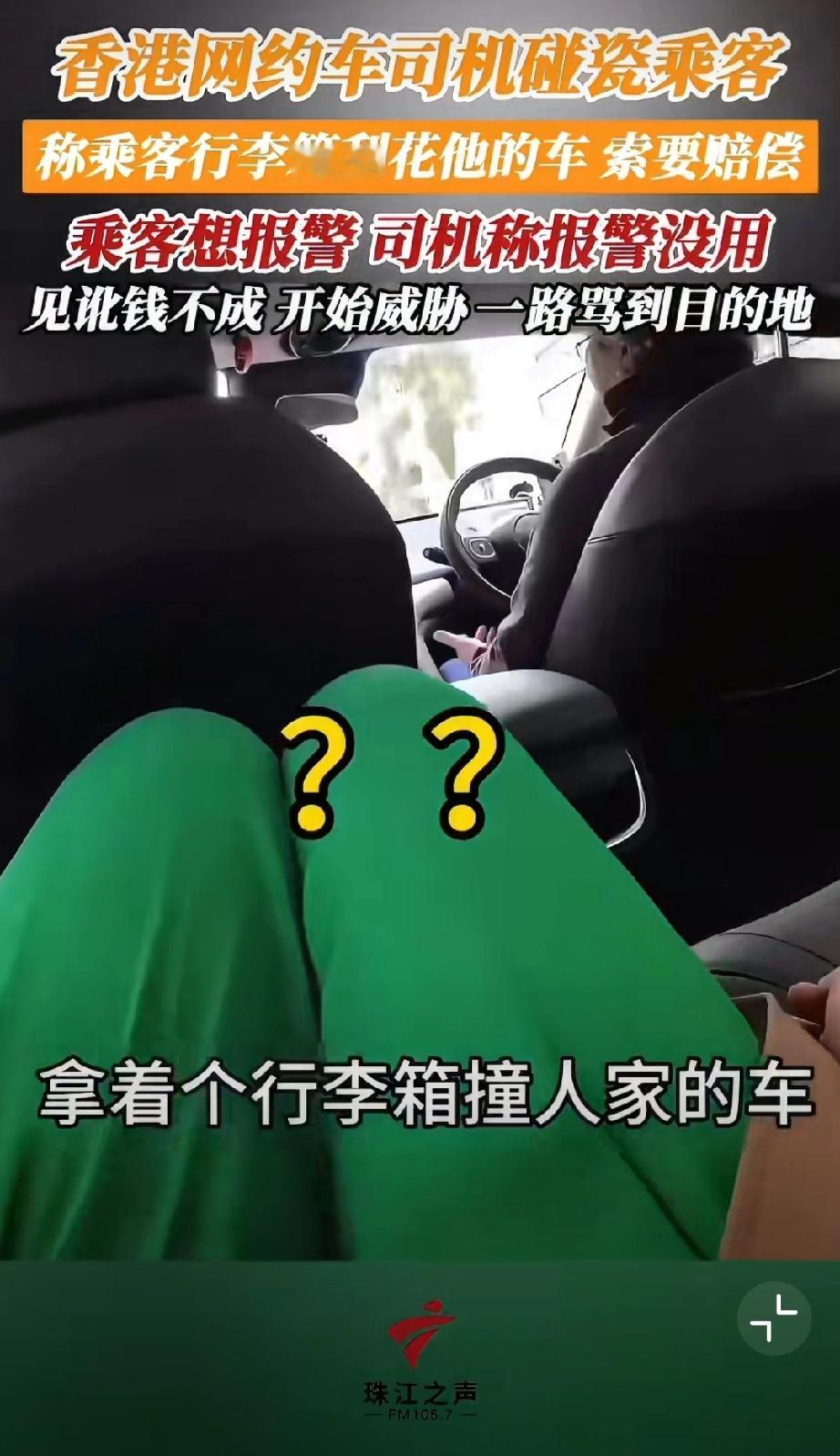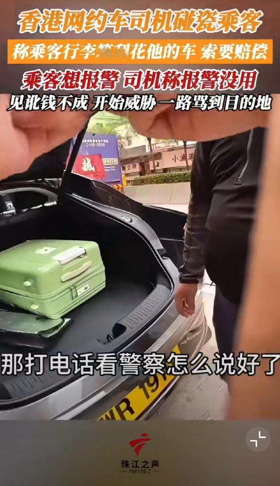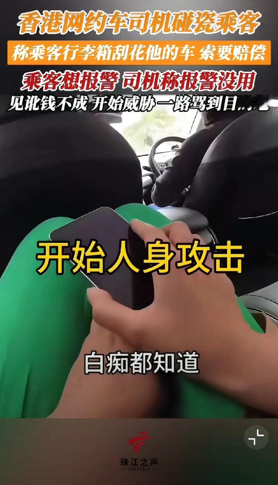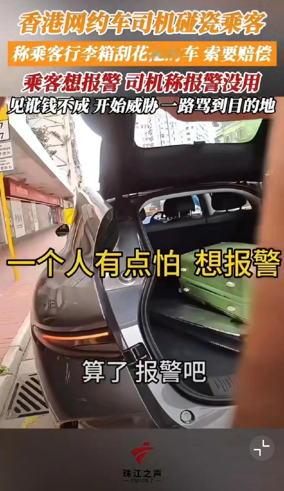 香港网约车司机碰瓷乘客,称乘客行李箱刮花他的车,索要赔偿500块。哪知乘客随身开着摄像头要报警,司机阻拦让其上车。但是上车后开始威胁,一路骂到目的地…我也是服了[尬笑][尬笑][尬笑]堵路碰瓷 错付车费事件 网约车碰瓷骗局