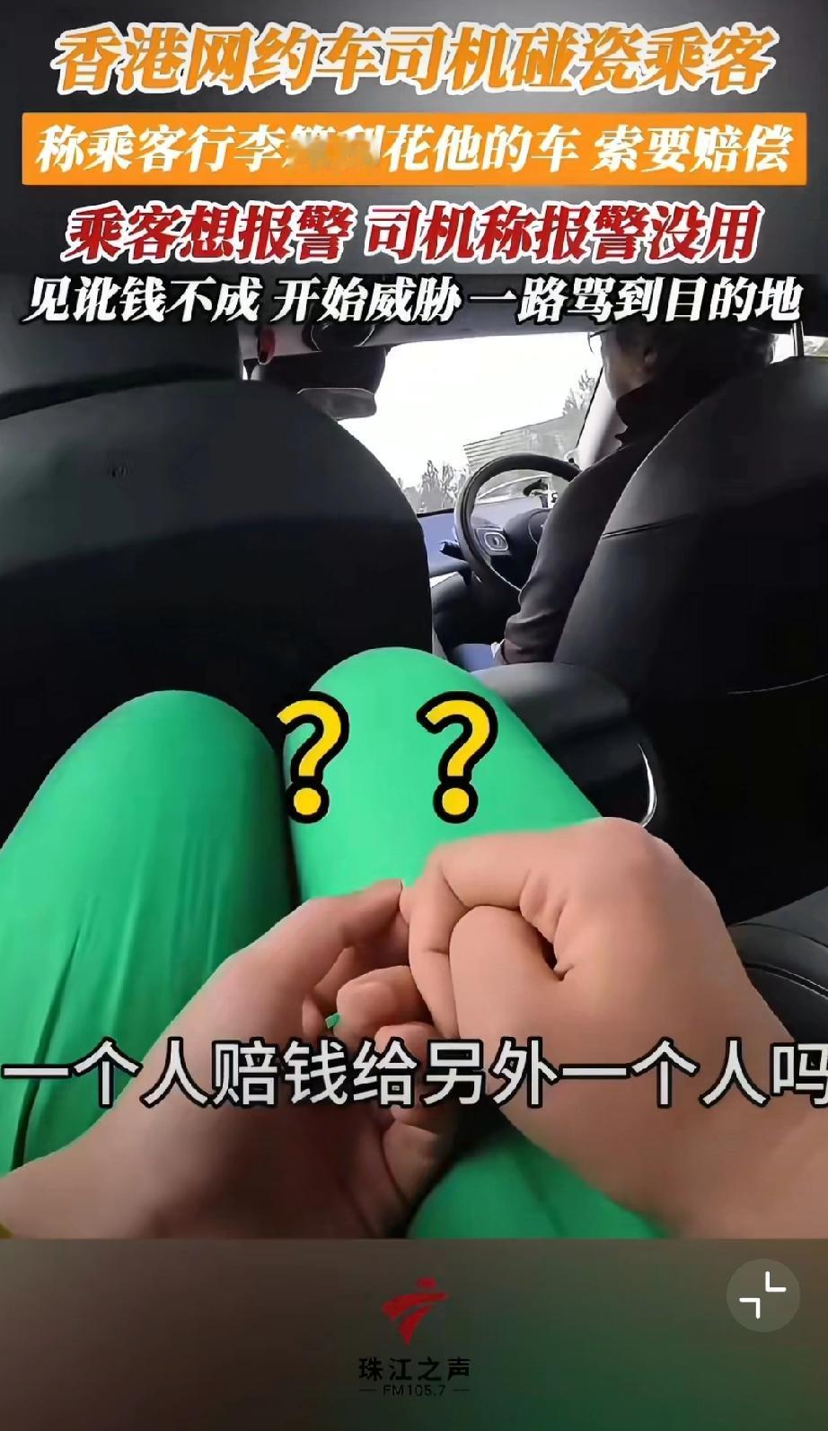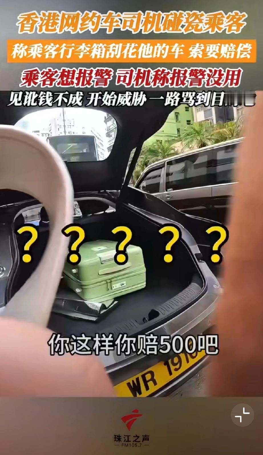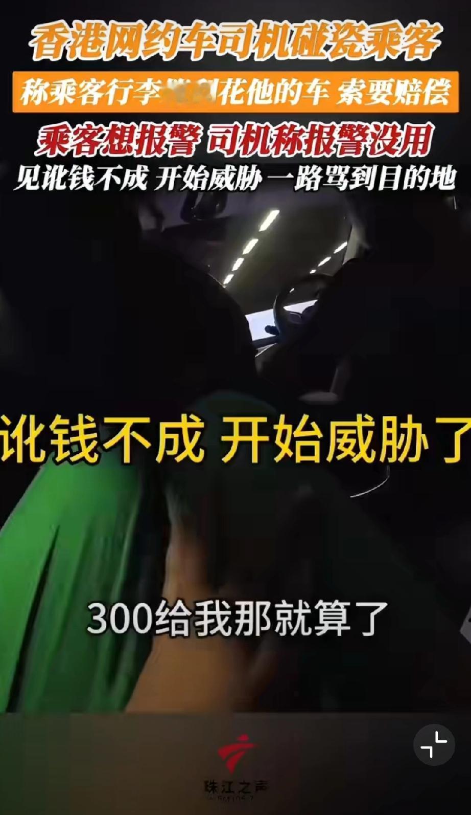 香港网约车司机碰瓷乘客,称乘客行李箱刮花他的车,索要赔偿500块。哪知乘客随身开着摄像头要报警,司机阻拦让其上车。但是上车后开始威胁,一路骂到目的地…我也是服了[尬笑][尬笑][尬笑]堵路碰瓷 错付车费事件 网约车碰瓷骗局