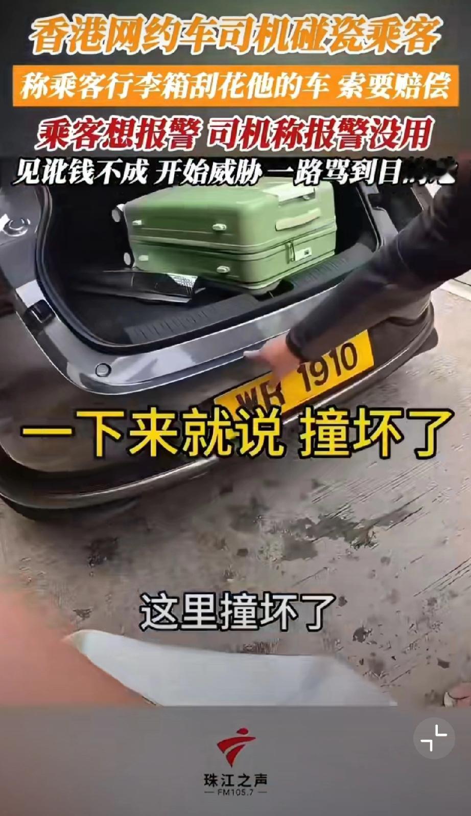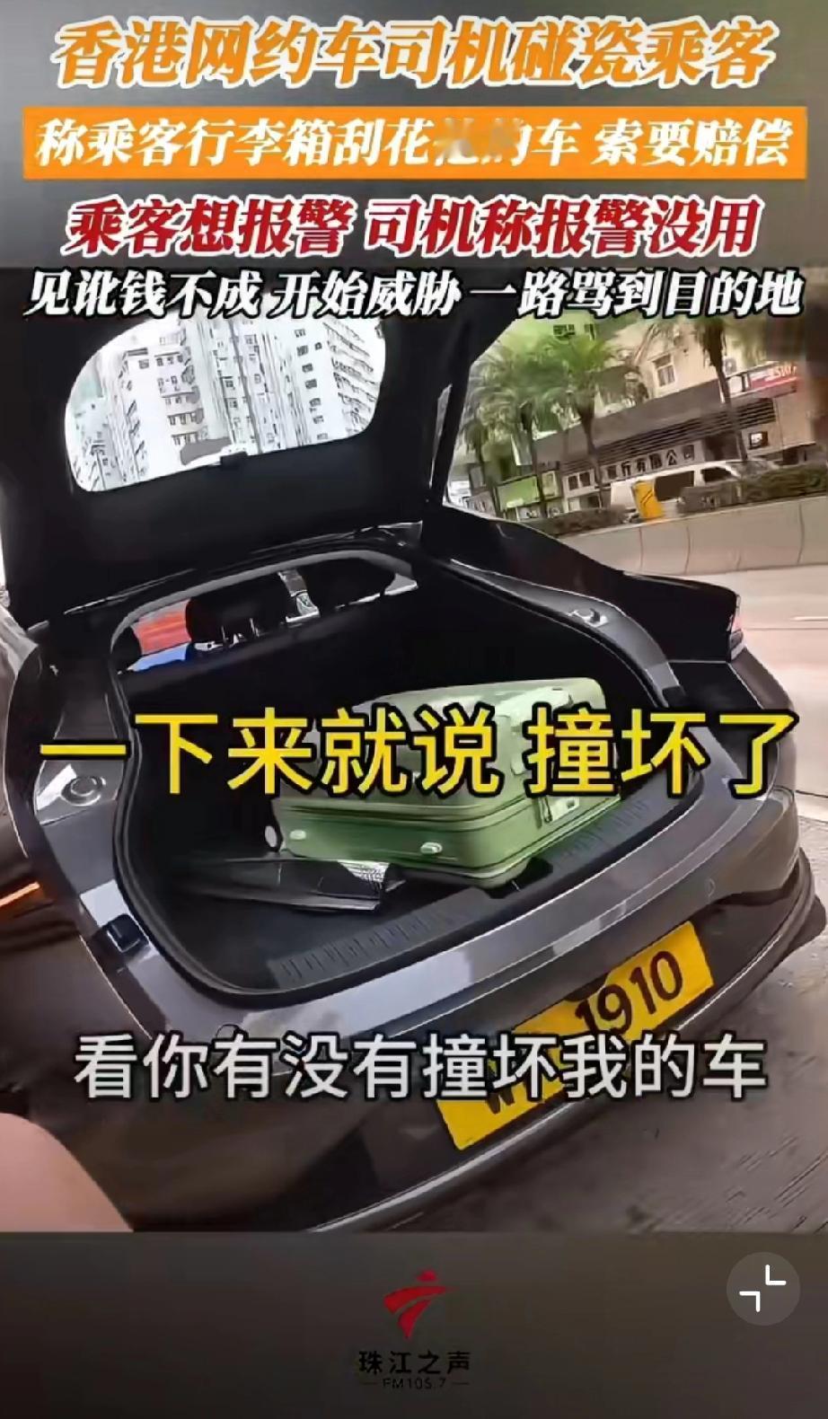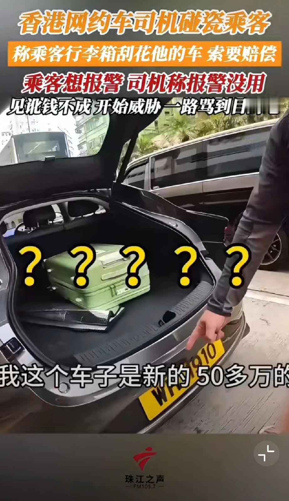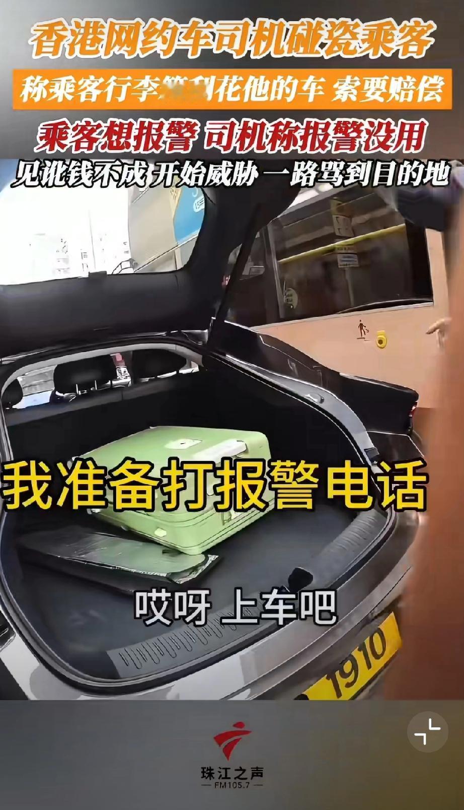 香港网约车司机碰瓷乘客,称乘客行李箱刮花他的车,索要赔偿500块。哪知乘客随身开着摄像头要报警,司机阻拦让其上车。但是上车后开始威胁,一路骂到目的地…我也是服了[尬笑][尬笑][尬笑]堵路碰瓷 错付车费事件 网约车碰瓷骗局