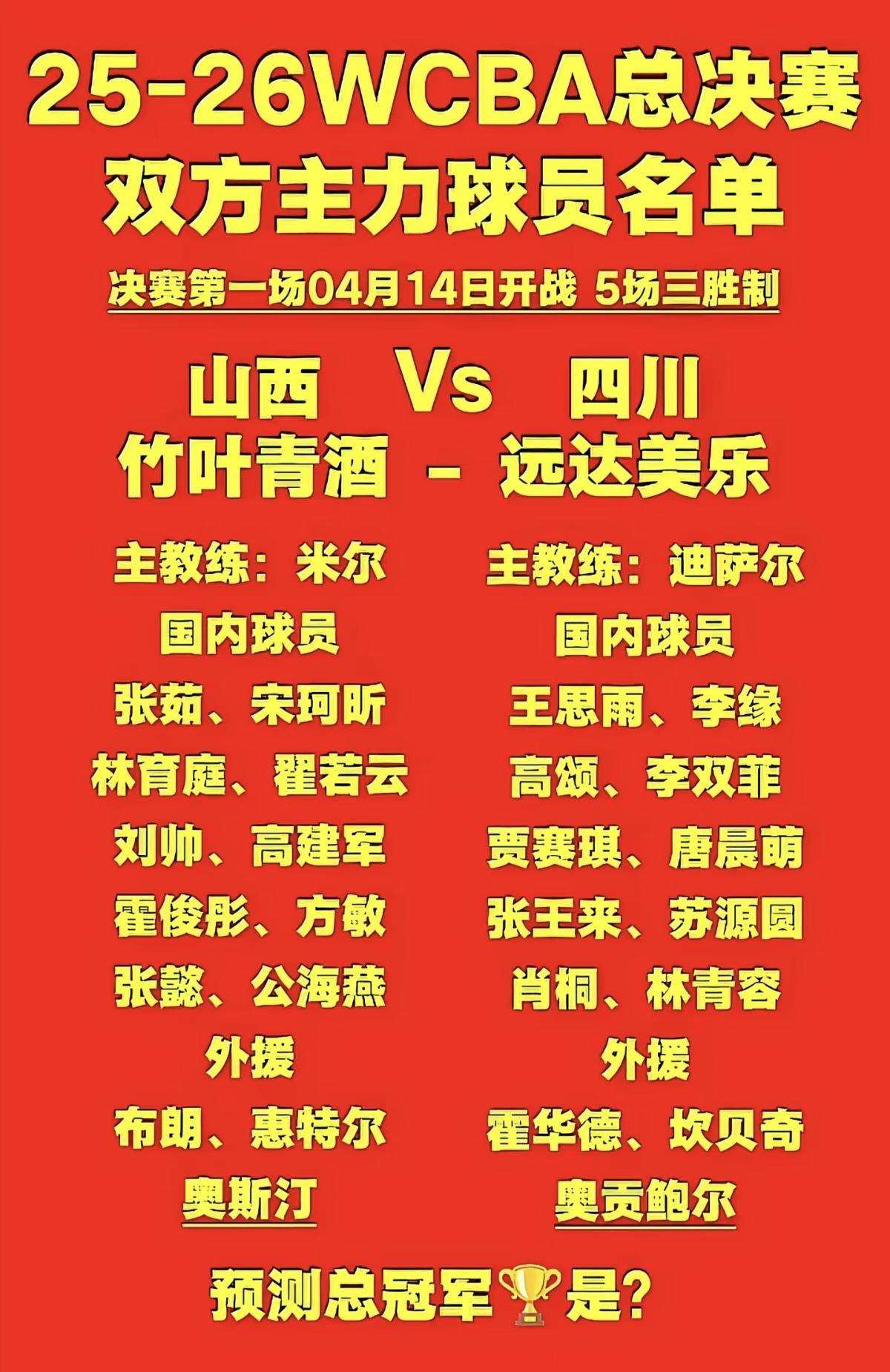 还是第一次见,没有国内女中锋参加的WCBA总决赛呀!这究竟是中国的联赛呢,还是外国的联赛?第一次见WCBA的女篮总决赛,对面各三个外援唱主角,没有一个国内的大中锋参与,还不约而同都是外教执教!这可能又是破了WCBA的历史吧!有国内大中锋的韩旭是出走四川了,李月汝也在海外,山东的张子宇,和上海的刘禹彤,江苏的许晨妍,都止步于八强,四强了!两支打进总决赛的四川女篮,和山西女篮,除了山西女篮有个不知名中锋之外,内线的对决全是坎贝奇,布朗这些国外的中锋!