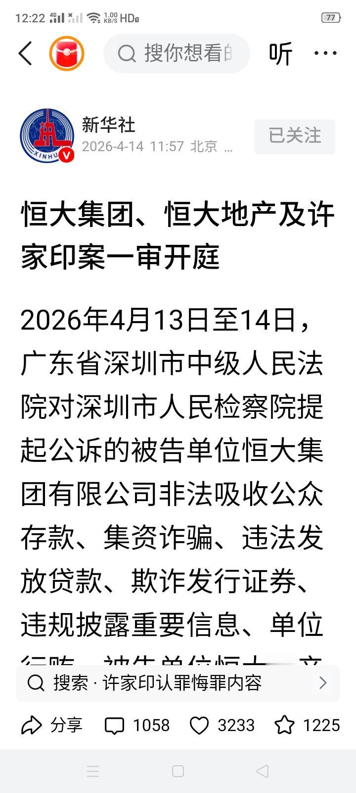 恒大案终于开庭审理了,许家印当庭认罪悔罪,可给国家和人民造成的损失将由谁买单?把