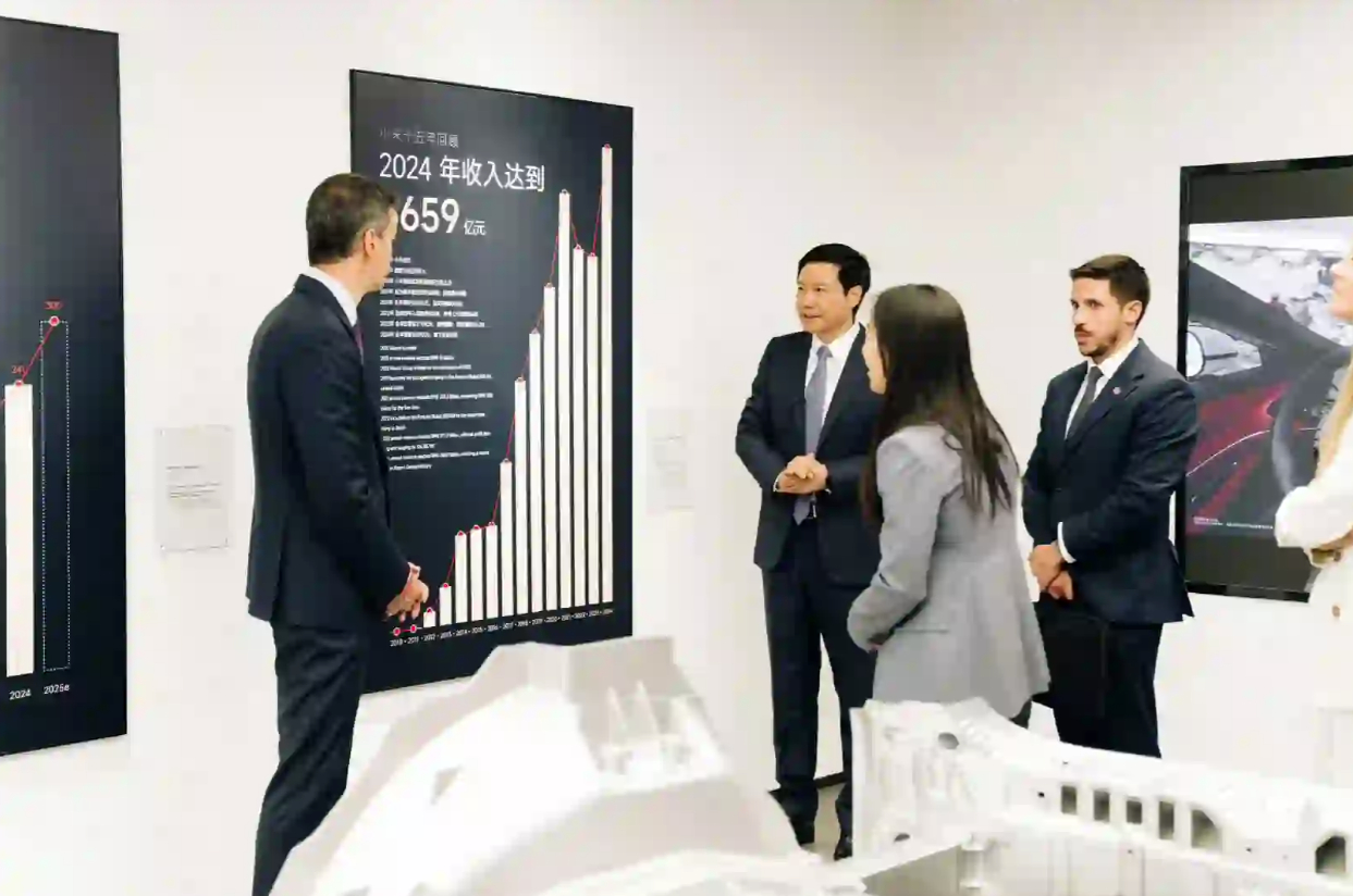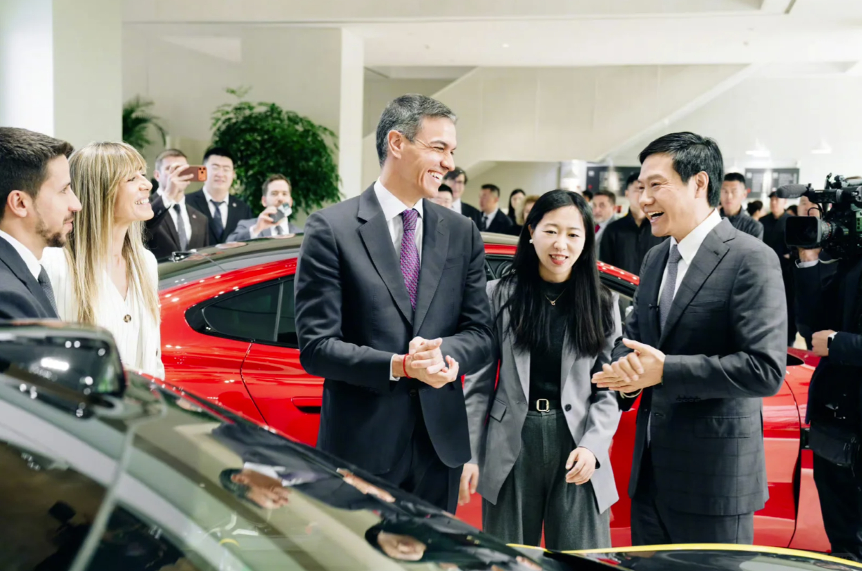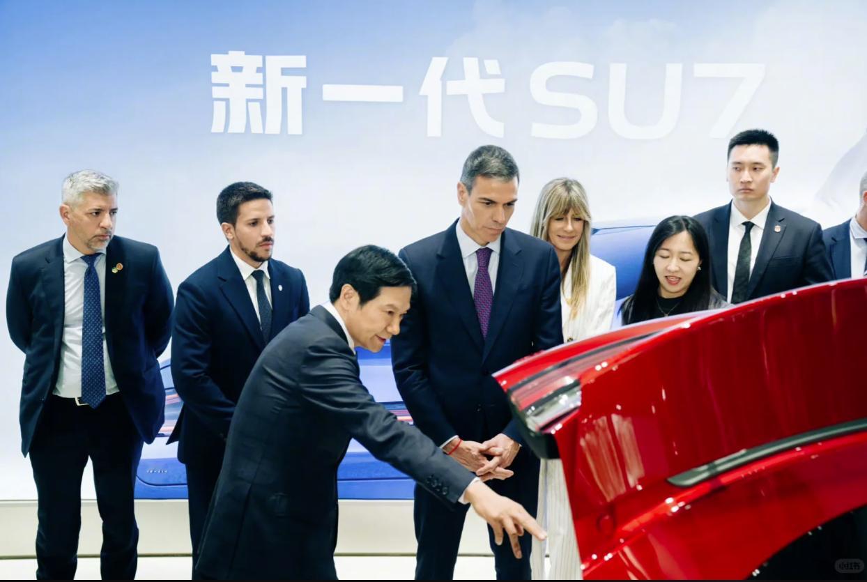 外交名片再添彩。西班牙首相桑切斯到访小米科技园,雷军陪同体验新SU7、YU7及A