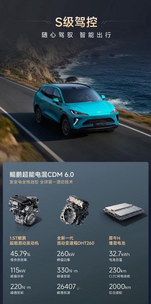 风云T9L大五座SUV上新了。总共五个配置,五款外部车漆、三款内饰颜色,价格12.99~18.69万元。配置给的挺足,灵犀智舱、双零重力座椅、伯牙音响、CDC阻尼可调减震、猎鹰700驾驶辅助你喜欢的都有。动力层面用的是1.5T鲲鹏超混、32.7度犀牛H增混电池,还有四驱双电机能选,CLTC纯电续航230公里,综合续航2000公里。【来自懂车帝车友圈】