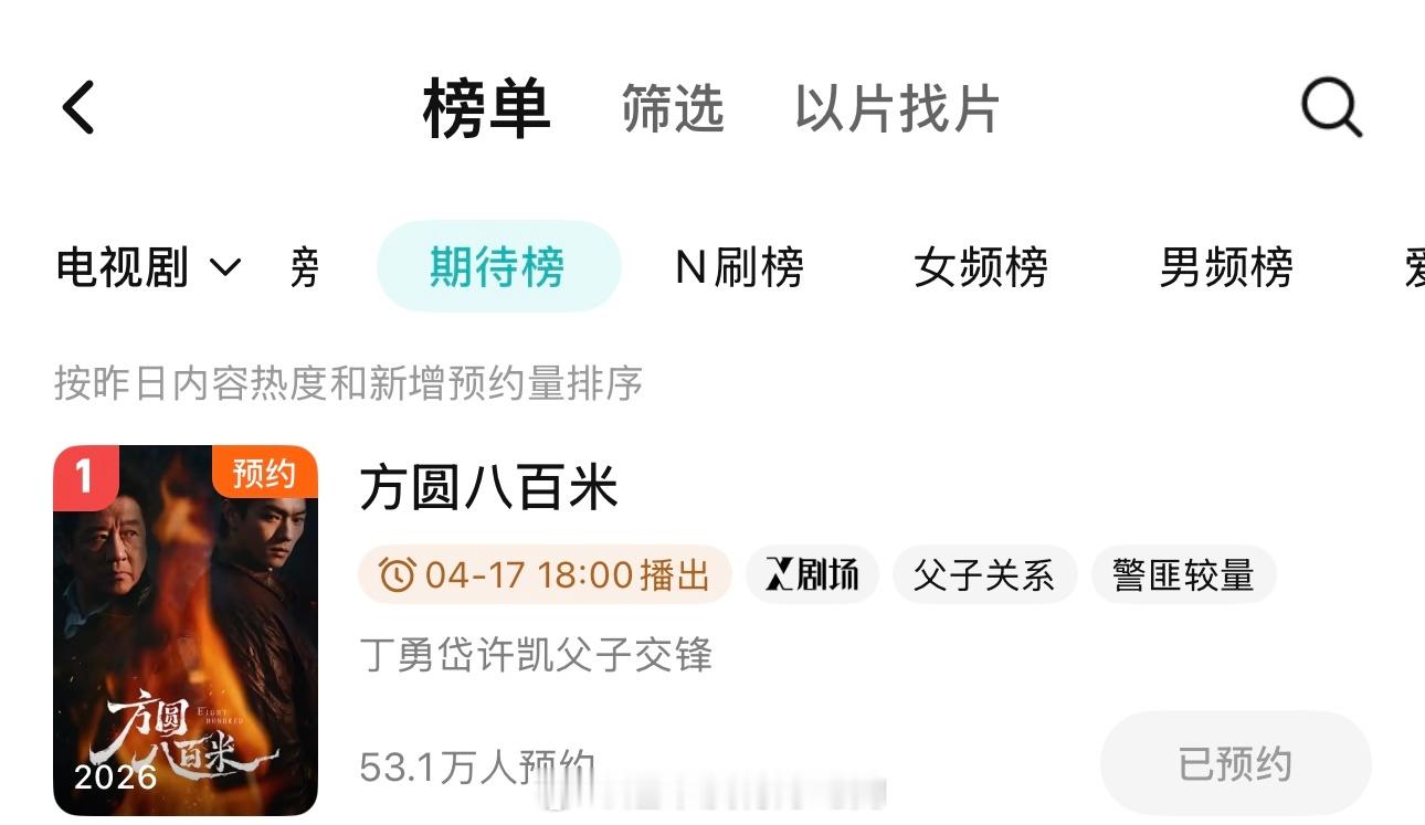 许凯《方圆八百米》腾讯视频期待榜第一了预约也破50万了,许凯太牛了,期待我们陈辉