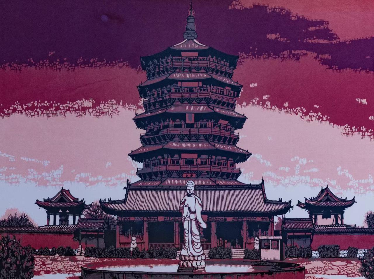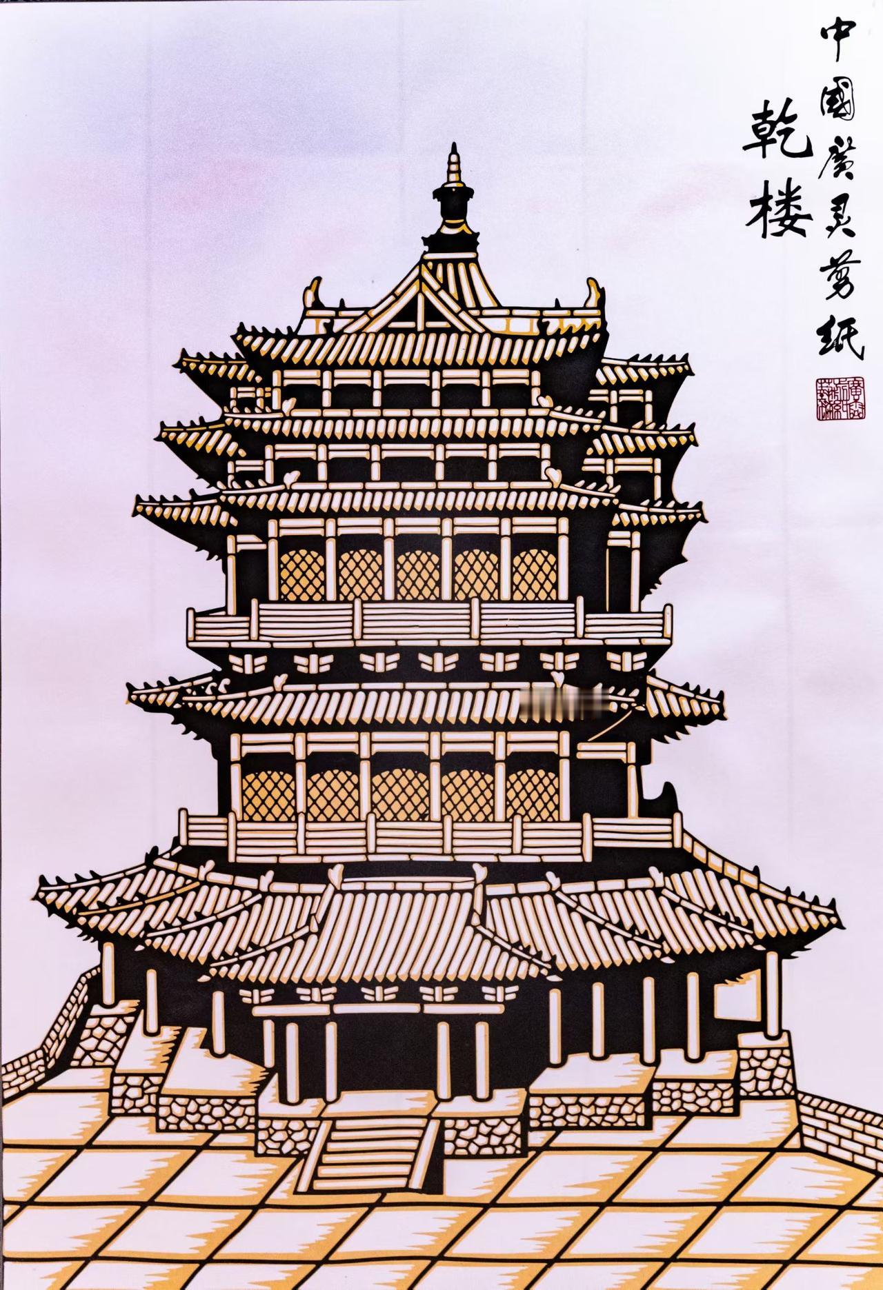 广灵剪纸中的山西古建筑。