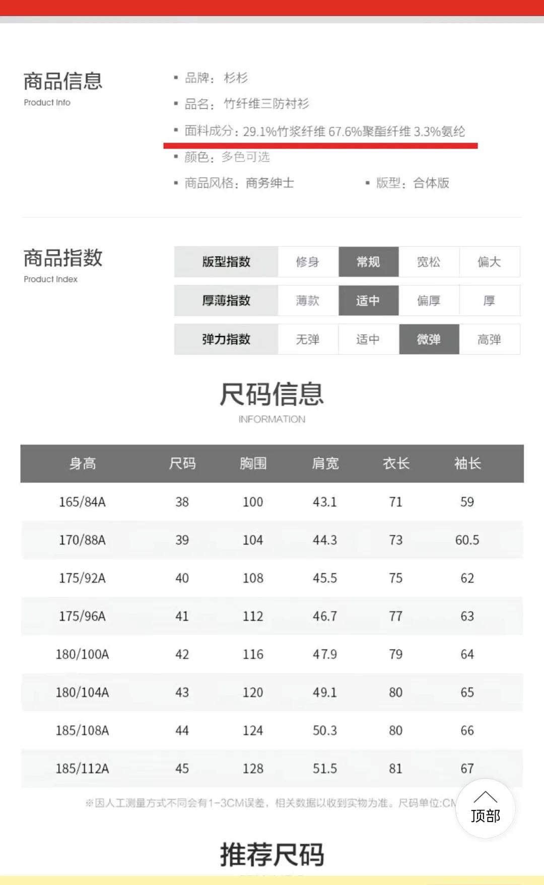 最后是图四,这件桑蚕丝的衬衫,面料成分为聚酯65.8% + 莫代尔28.4% + 氨纶3.2% + 桑蚕丝2.6%。
