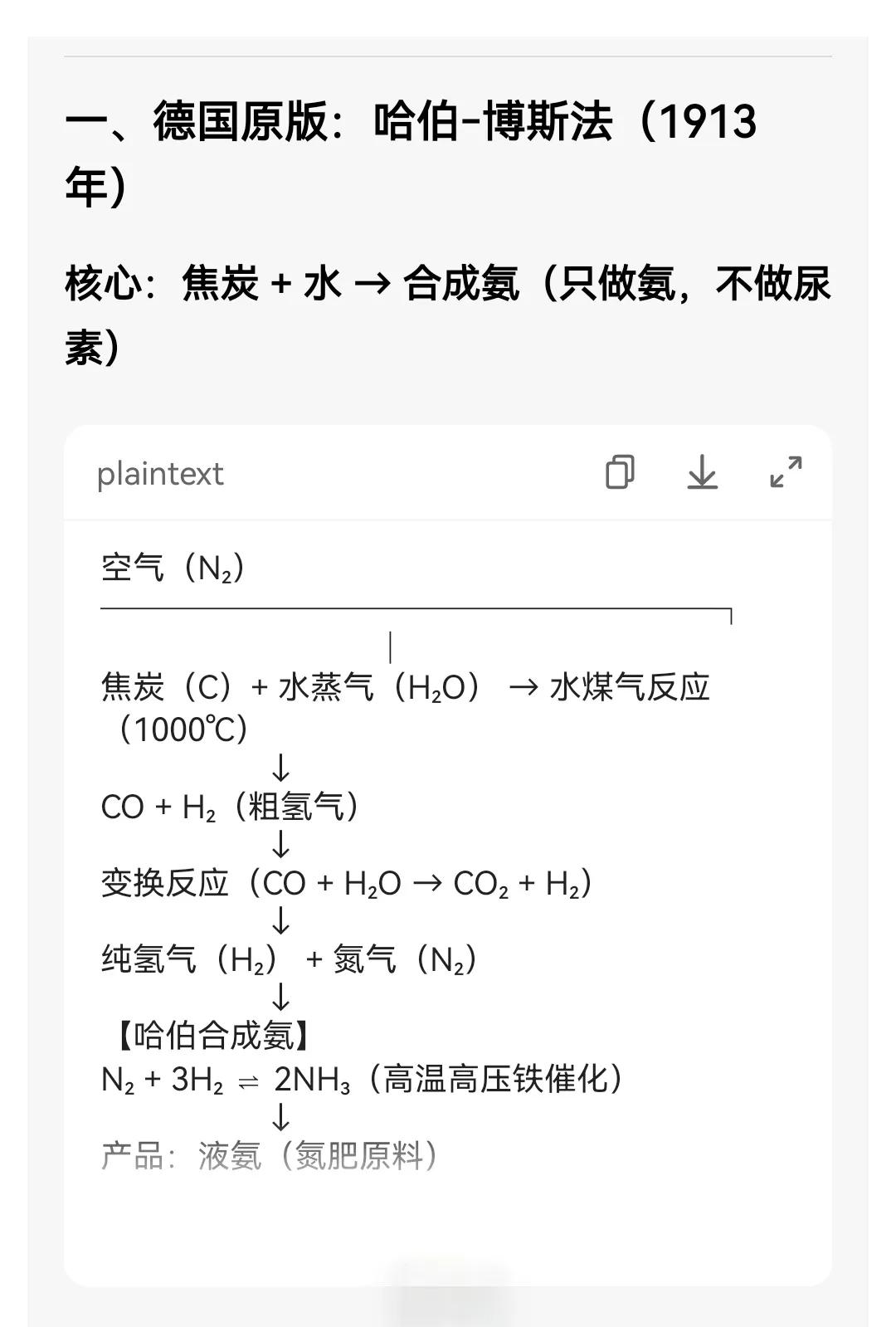 当时,德国人用的就是煤炭燃烧,再抓取空气中的氮气来生成合成氨,跟中国一样,德国也是煤炭储备丰富,这是完全能够独立自主的安全能源。