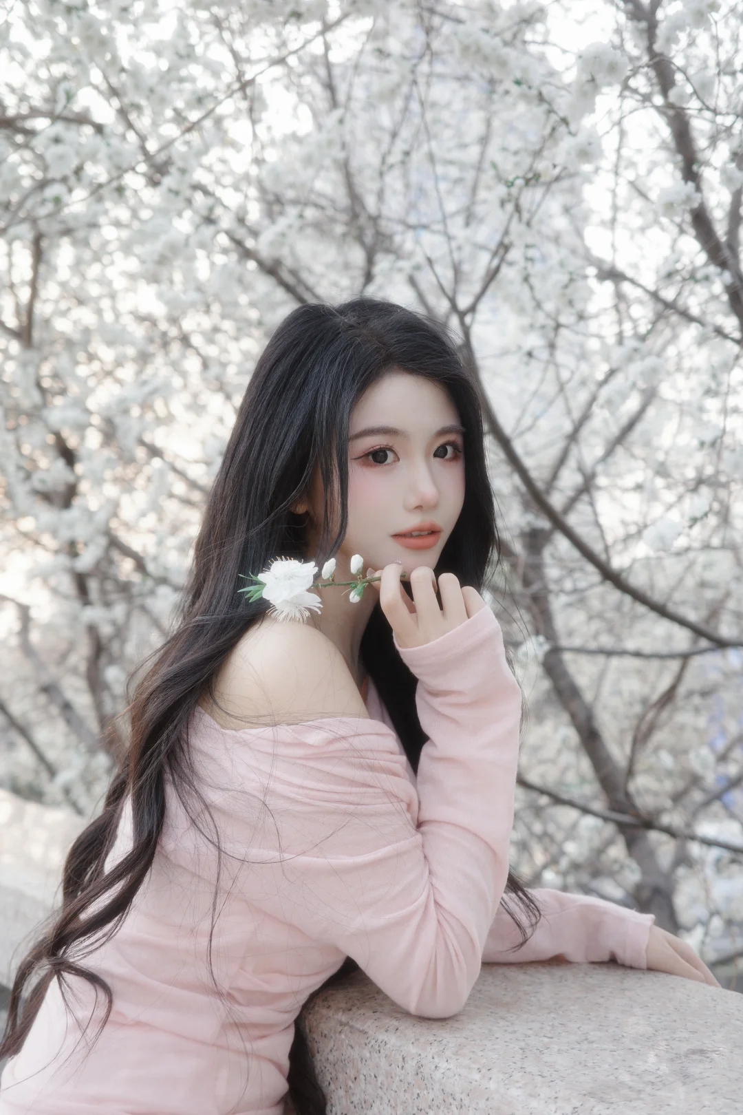 服装建议淡粉色白色都可以 佩戴花朵发夹或者随手捡起一朵花花别在头发上 更加增添氛围感[仙女R]