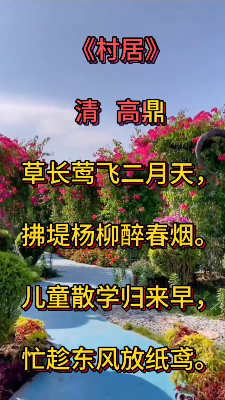 村居是清代诗人高鼎的一首七言绝句,描绘了春日乡村的明媚风光和儿童放风筝的欢快场景。