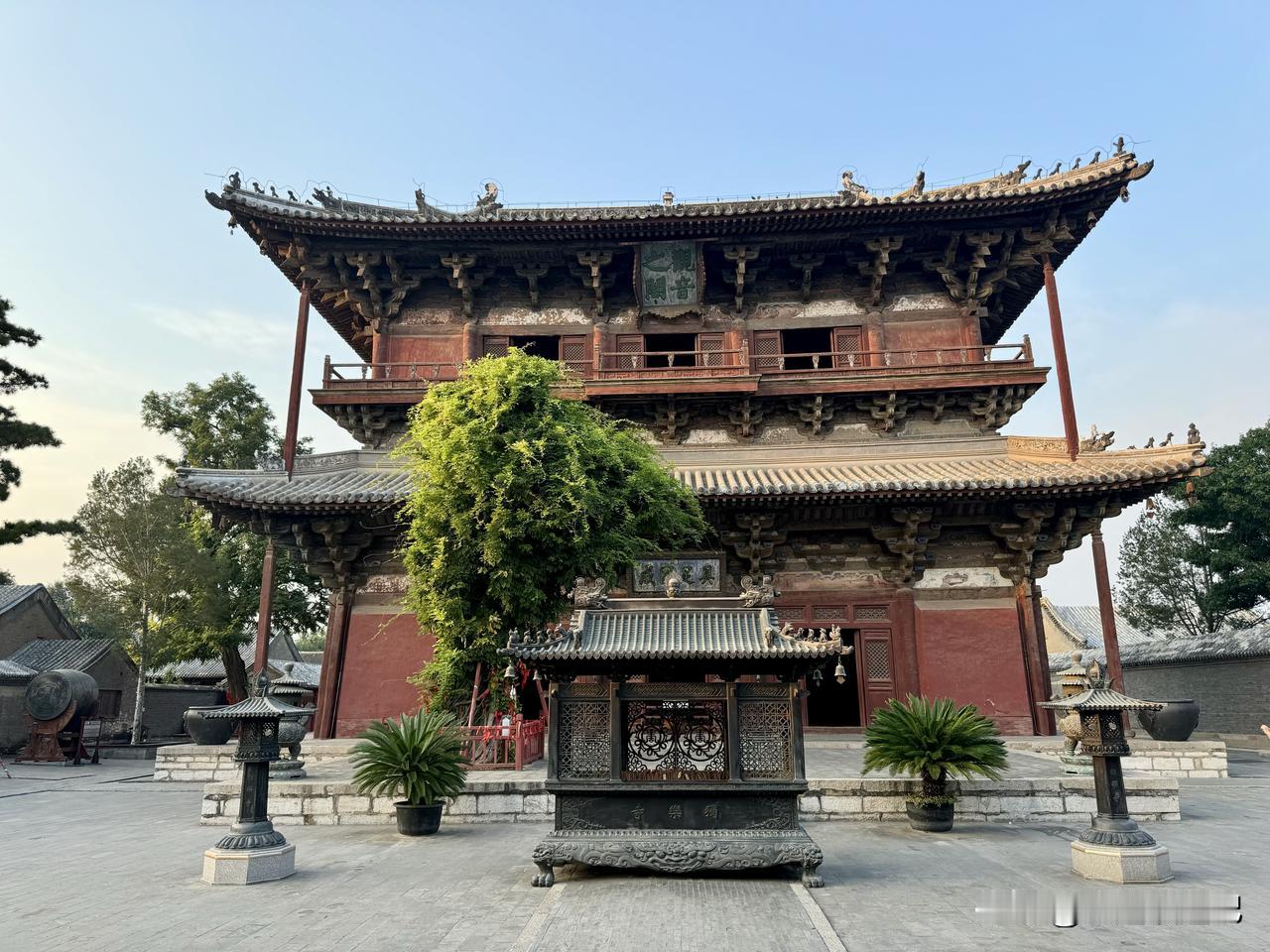 观音阁位于前门之后,整个建筑很高大,通高23米,是我国最古老的木结构楼阁式建筑,阁上悬挂的观音之阁匾额是李白的手书。当我们走进阁内,一定会被眼前的观音像震撼!