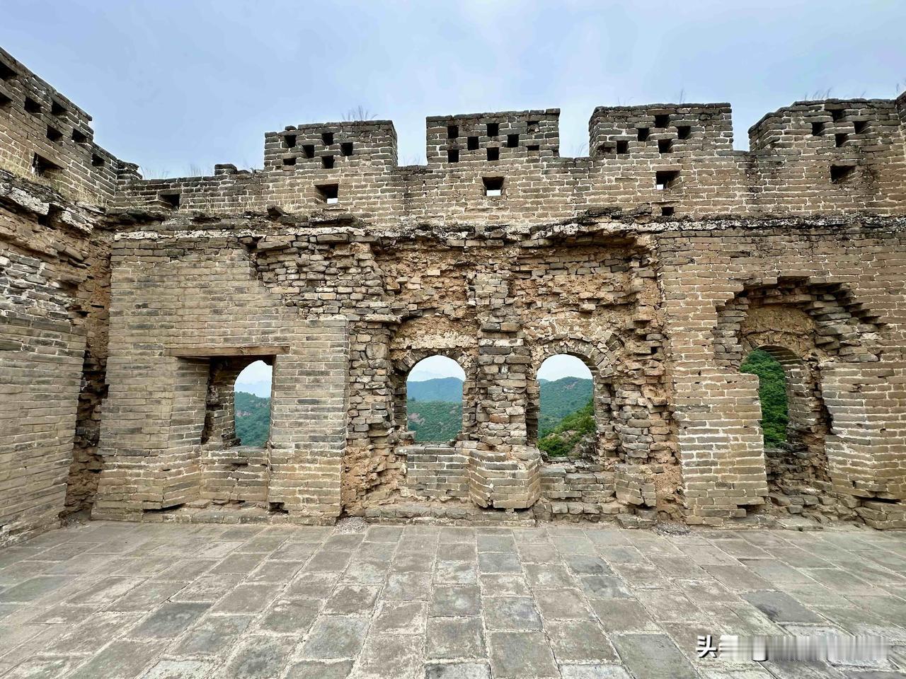 戚继光担任总兵期间,对蓟镇的长城改造很多,比如说走在城墙上,北侧城墙底部的圆洞是擂石孔,用来放滚木擂石打击来犯的敌人,而南边的圆孔就是排水孔,因为是阳面有了积水可以快速晒干保护墙体。
