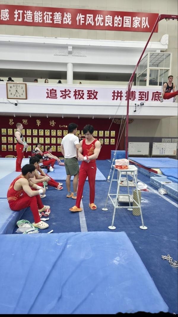 茶今天参加了和瑞士男队友谊赛,应该是比了下吊环,感觉他还挺开心的。