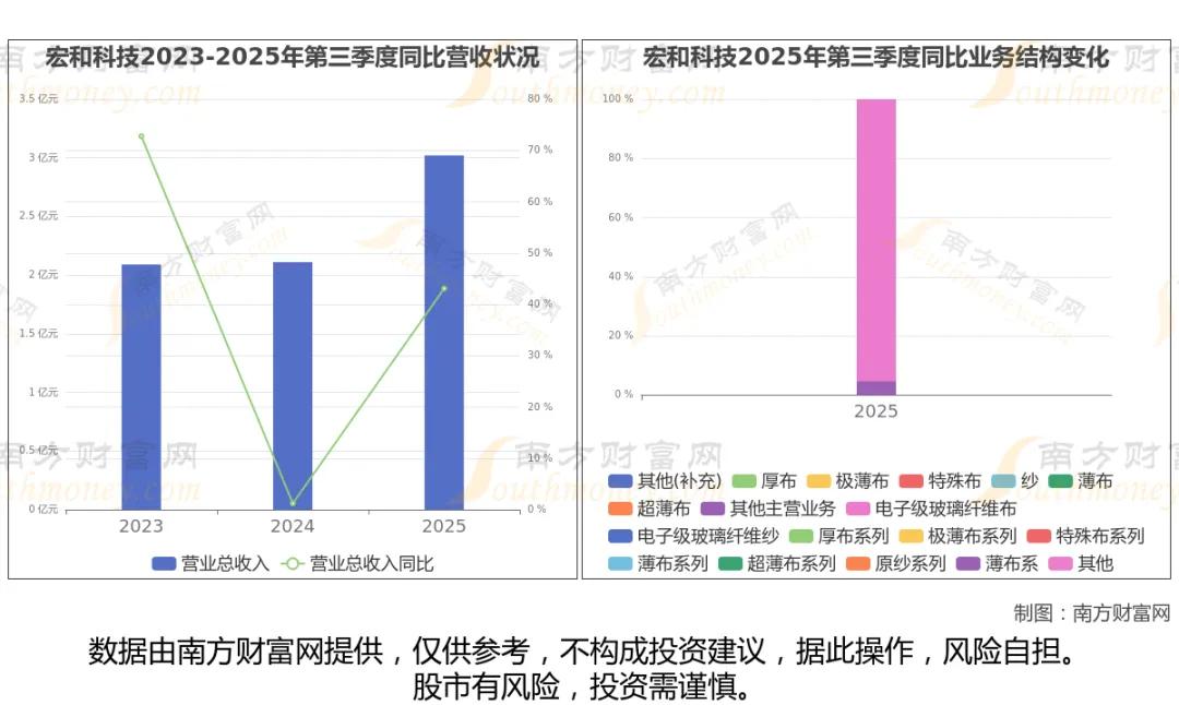 自主研发、拥有独立知识产权的5G用低介电玻璃纤维已实现批量生产。产品线涵盖玻璃纤维、玻璃纤维制品等产品。2025年第三季度,主营业务收入22.6亿元,同比增长18.3%;毛利率18.22%,净利率2.62%,归属净利润4162.61万,同比增长167.66%。
