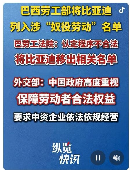 据悉,比亚迪巴西奴役劳工事件惊天大反转,黑公关和背后的主子们一夜间心都碎了。