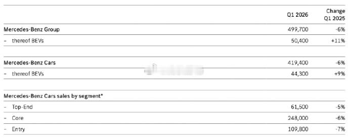 奔驰公布2026年第一季度全球销量——中国市场遭遇最近5年最差Q11、全球销量: