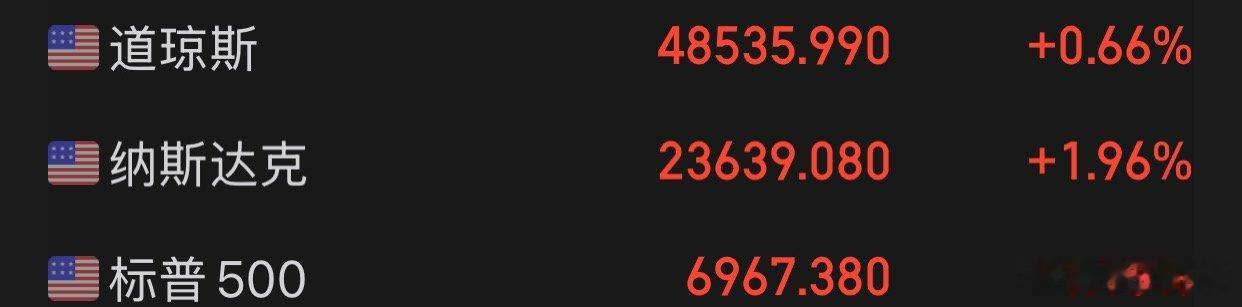 美股三大指数全线收涨。数据显示,截至收盘,道琼斯工业指数涨0.66%,纳斯达克指数涨1.96%,涨超450点,连续10个交易日上涨,标普500指数涨1.18%。