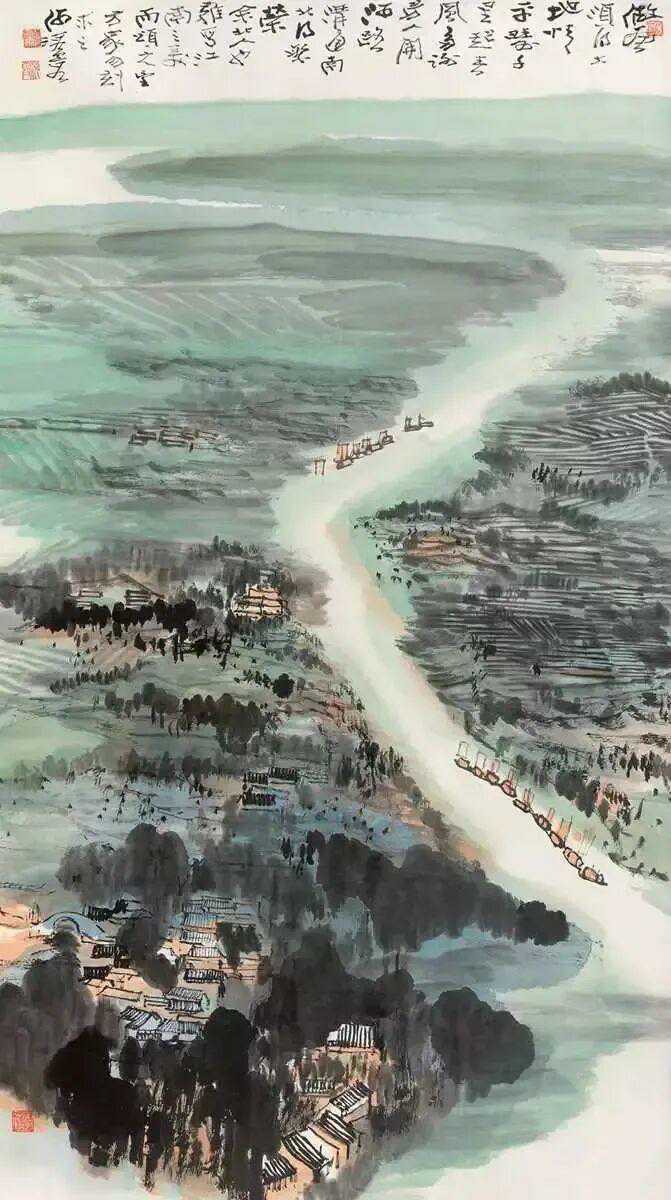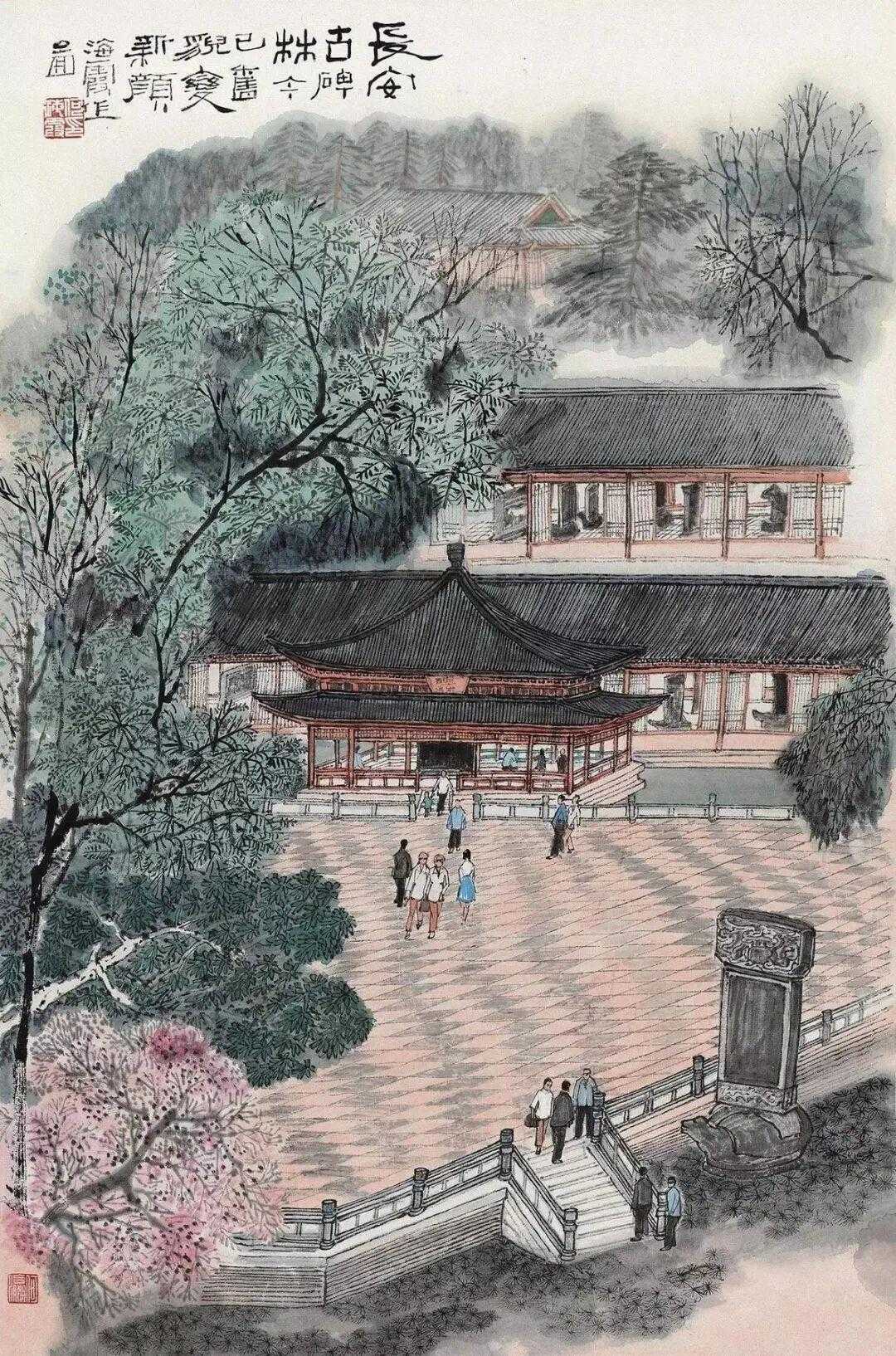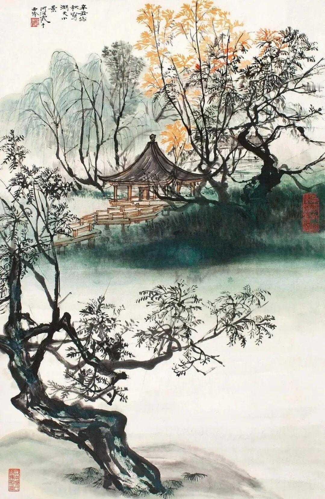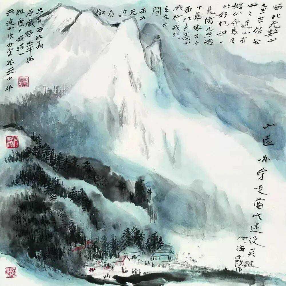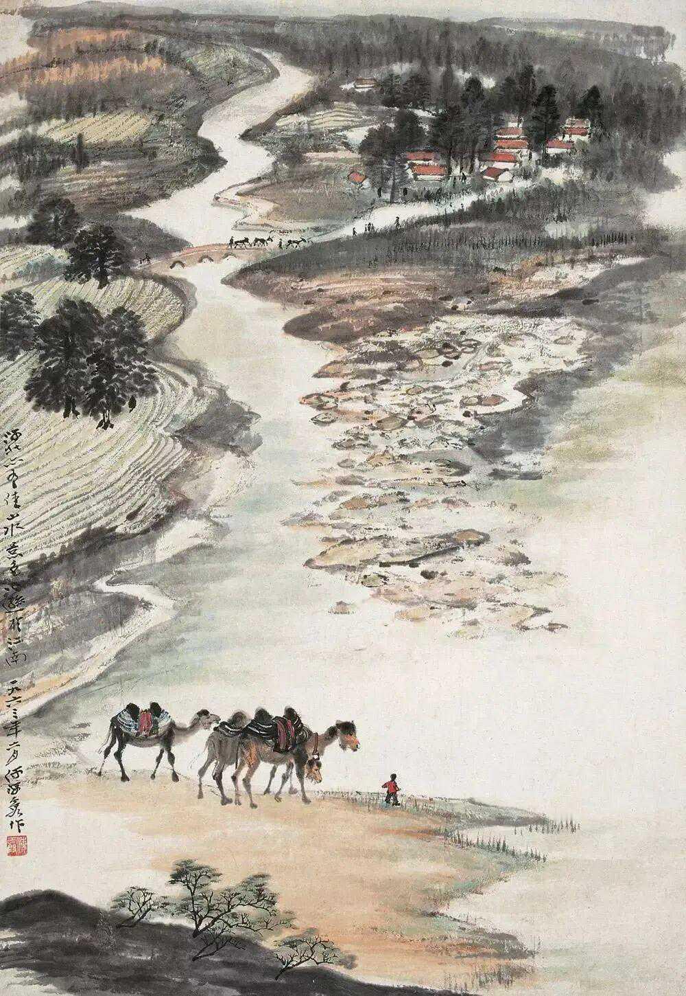何海霞(1908年10月7日—1998年8月5日 ),名瀛,字海霞,以字行。北京市人。1956年调入陕西美协从事专业创作,为“长安画派”代表画家之一。1983年任陕西省国画院副院长,不久调北京中国画研究院工作。擅长山水,亦能花卉。其创作往往将青绿工笔与水墨笔意融为一体,立意新奇,笔力雄健,风格浑厚而不失秀丽。这就是中国风遇见艺术