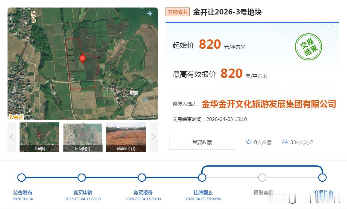 今日(4月3日)下午,金华市区金西九峰山片区两宗娱乐用地(共计约137亩)成功出让,底价成交!两宗地块均由金华金开文化旅游发展集团有限公司拿下。