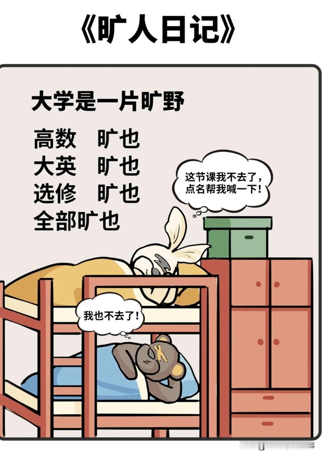 而众所周知,大学和初高中不同,如果说初高中是圈养,那大学更多就是散养,大学的辅导员不会像高中班主任一样每天起早贪黑、累死累活的盯着你上早读、上晚自习,反正学校没有升学压力,导员也没有来自校方的业绩要求,学与不学在你自己,到时拿不到毕业证是你自己的事。好一点的大学可能还稍微管管你,如果频繁缺课、经常挂科,学校真敢按照校规开除你。大多数学校其实不怎么管,特别是一些只为了赚钱的民办高校,只要按时交学费、住宿费,你爱逃课就逃,甚至学校巴不得早点把你送出去,这样还能节省一些水电开支、暖气成本。