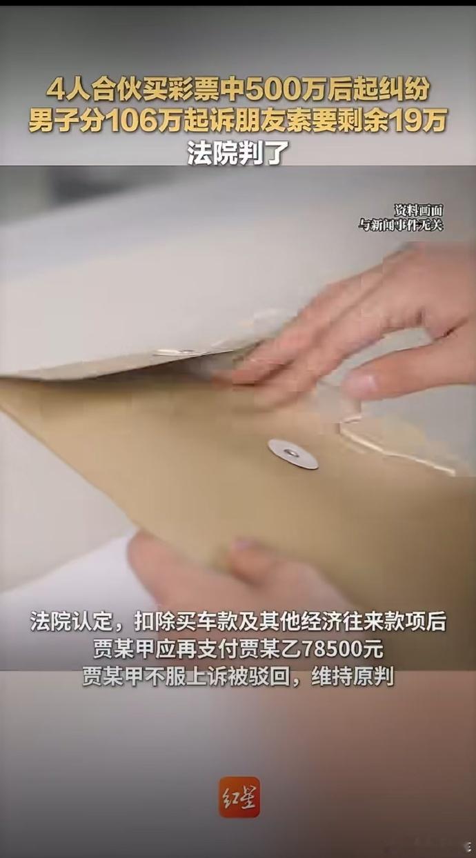 4人合伙买彩票中500万后起纠纷 每天一个彩票小故事最近真有意思,大眼仔老有中彩票热搜