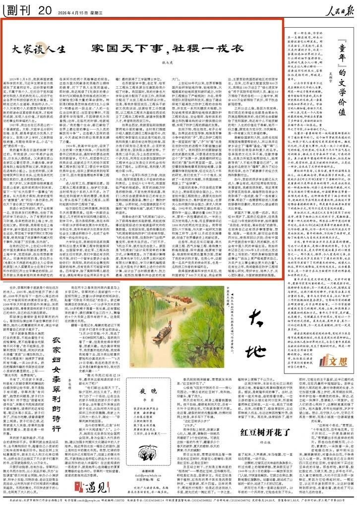 89岁的中国工程院院士、“八一勋章”获得者钱七虎在4月15日出版的《人民日报》副