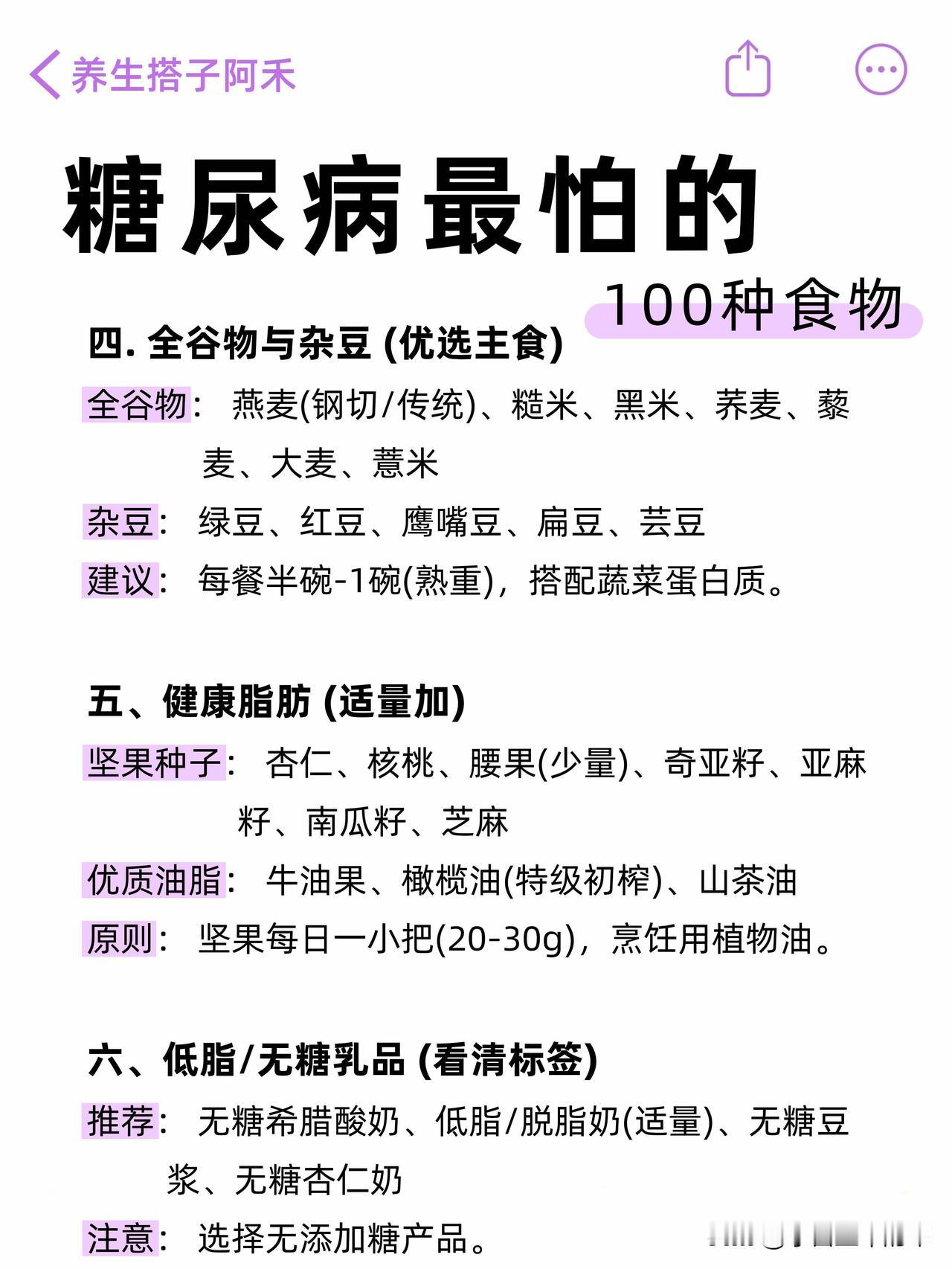 糖尿病饮食指南:100种“控糖友好”食物清单,照着吃稳血糖